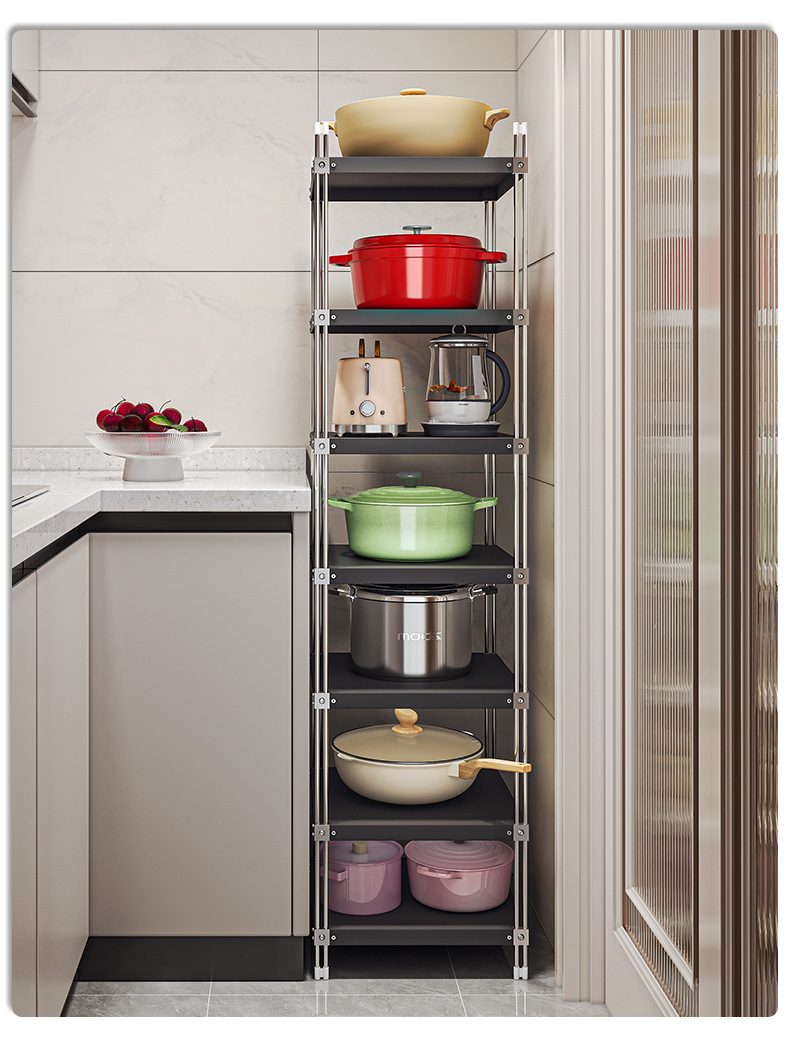 주방 보관 랙 바닥 다층 냄비 랙 스테인레스 스틸 갭 랙 가정용 방전 어플라이언스 포트 레이어 스토리지 랙