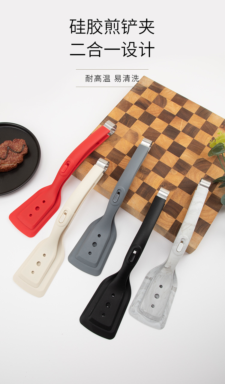 재고 실리콘 삽 클립 2-in -1 튀긴 생선 삽 클립 스테이크 클립 가정용 비 스틱 특수 스테이크 클립 주방 도구
