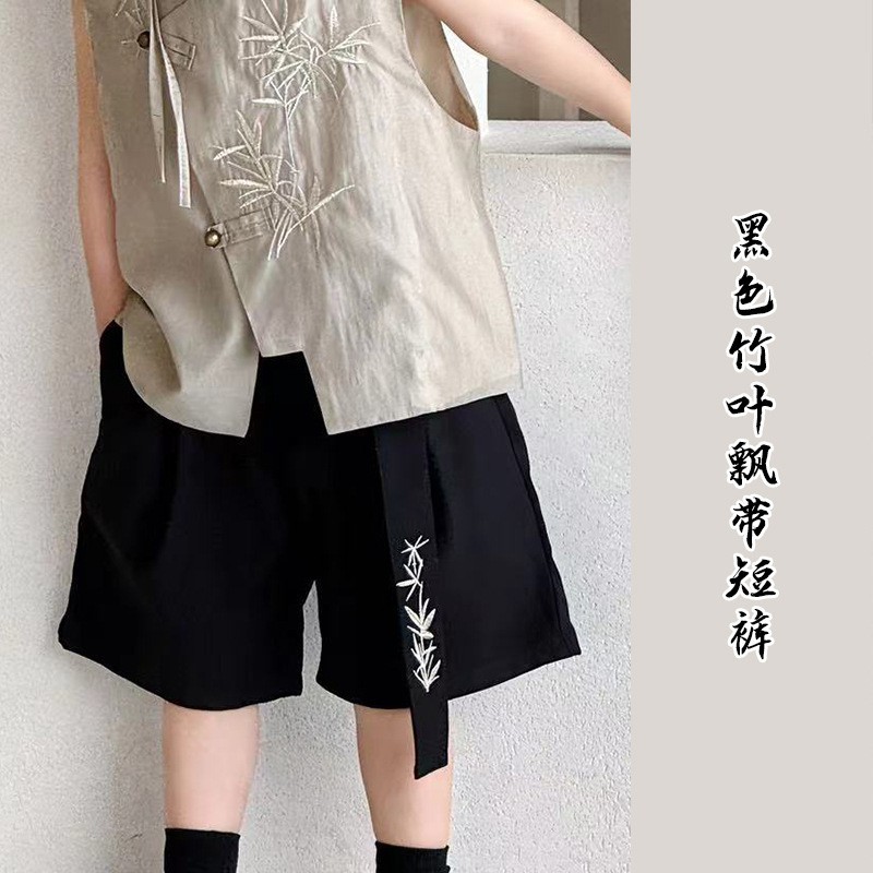 • 10533 검은 대나무 잎 스트랩 반바지