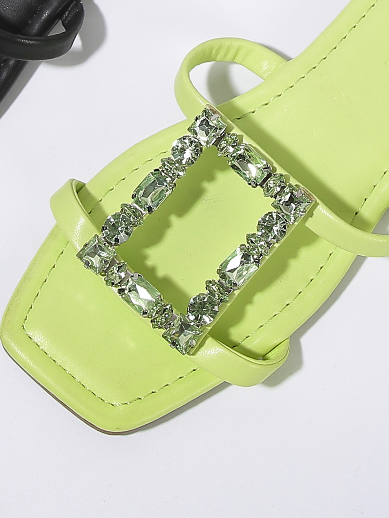 라인스톤 스퀘어 버클 스퀘어 헤드 유럽과 미국의 국경 간 차오 저우 신발 공장 여성 샌들 슬리퍼 비치 야외 캐주얼 플랫 슈즈
