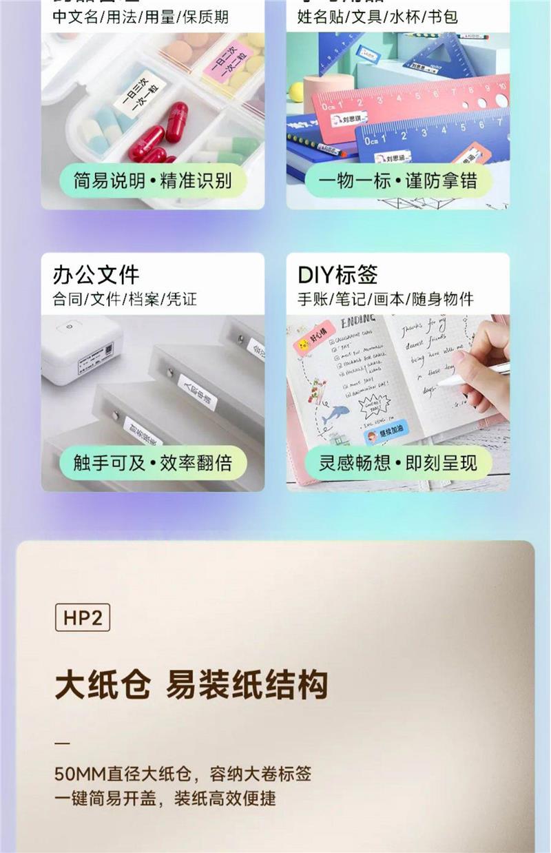 HP2S 홈 라벨 프린터 휴대용 라벨 기계 소형 휴대용 열 접착 스티커 이름 라벨 가격스토어 가기