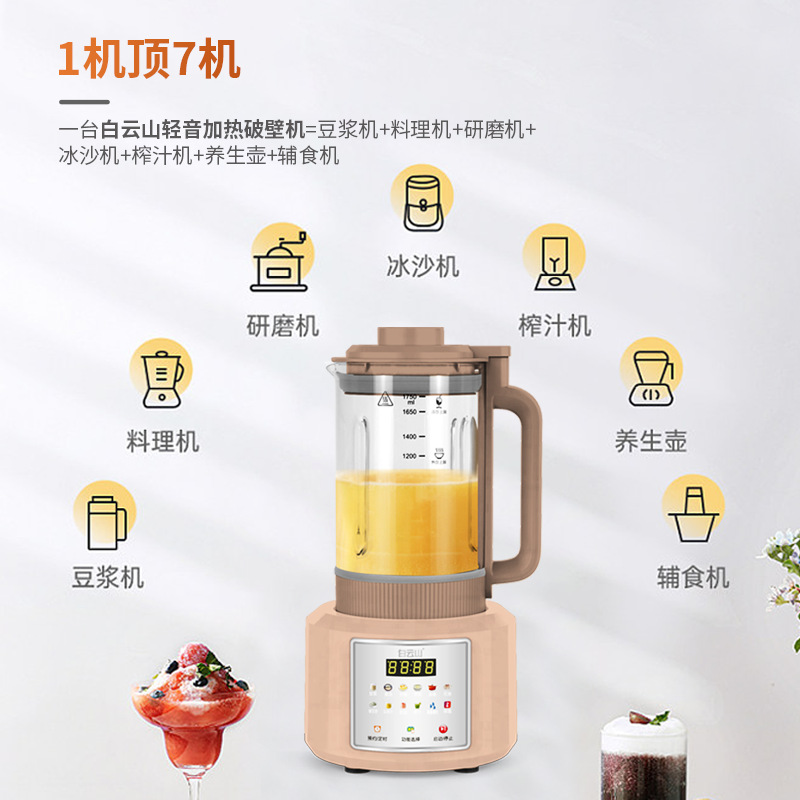 Baiyunshan 가벼운 소리 난방 벽 깨는 기계 혼합 다기능 가정용 1.25L 대용량 두유 과즙 짜는기구