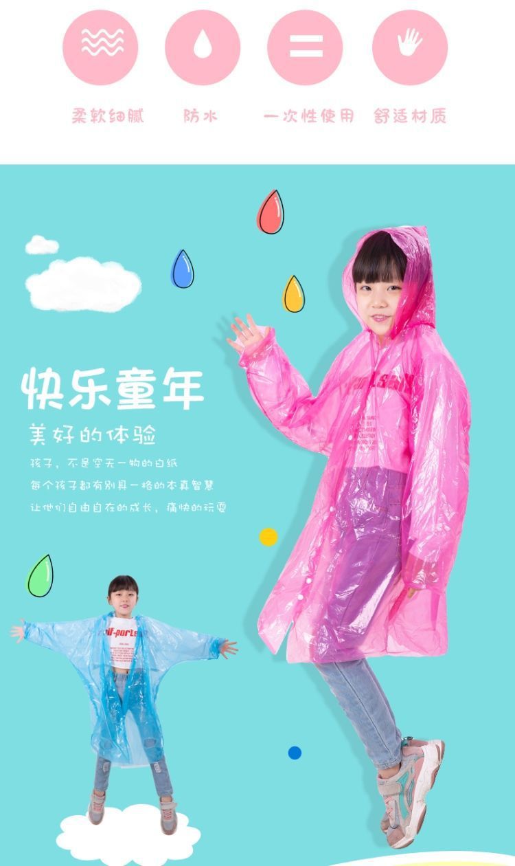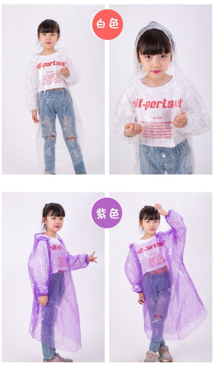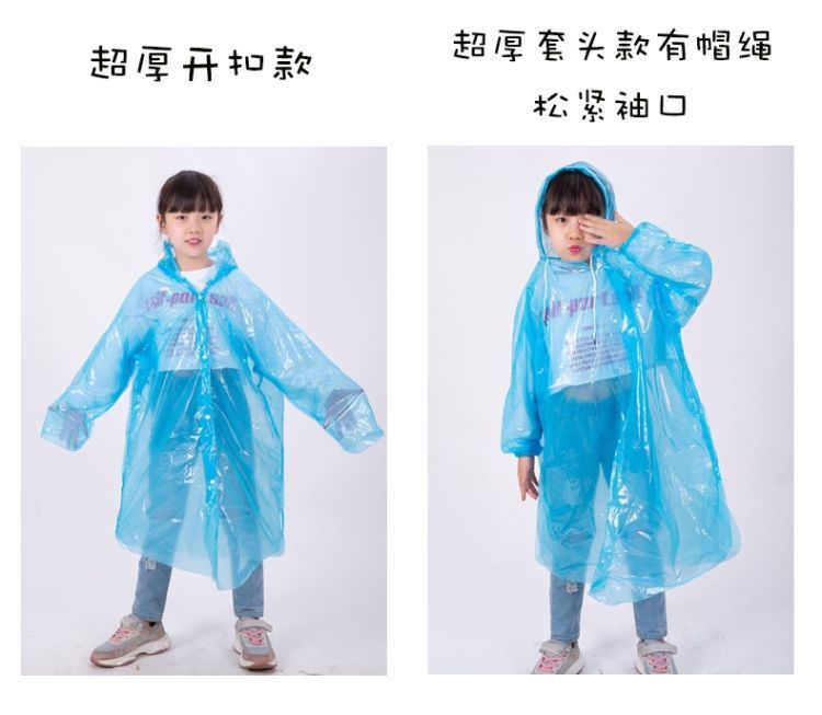 소년 및 초등학생을위한 어린이 일회용 비옷 두꺼운 휴대용 배낭 소녀 야외 여행 투명한 판초 공장스토어 가기