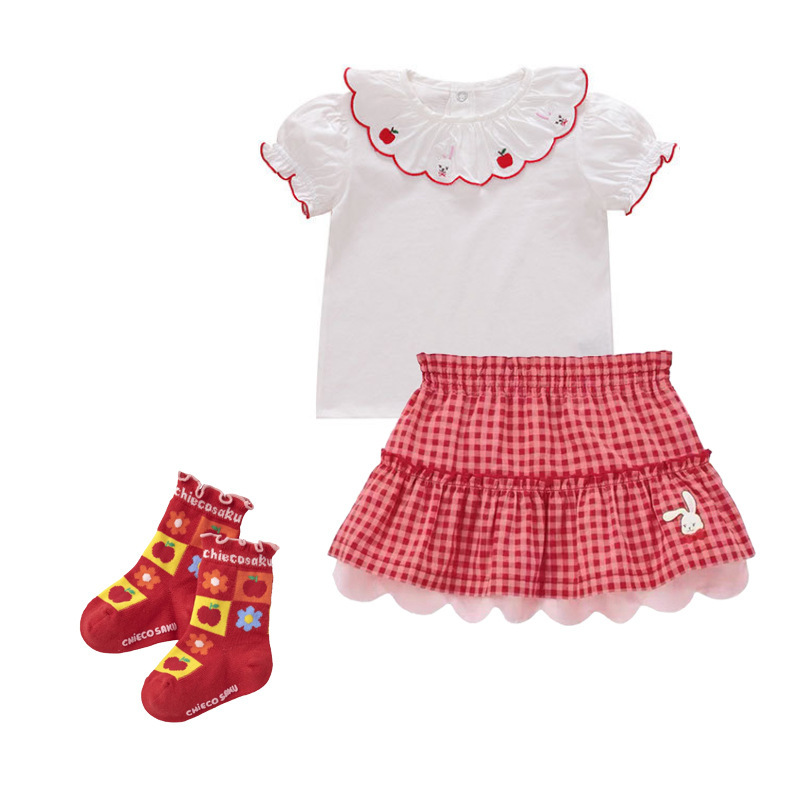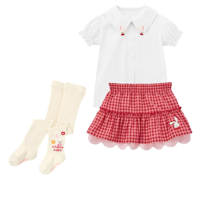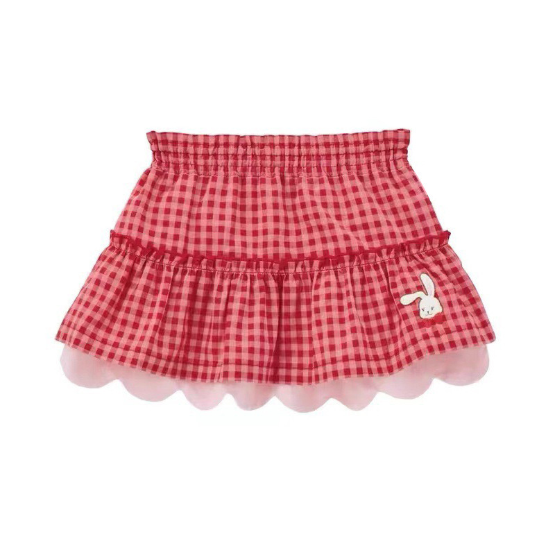 재고 미키 스커트 여름 새로운 소녀 만화 cs 토끼 꽃 자수 체크 무늬 스커트 양면스토어 가기