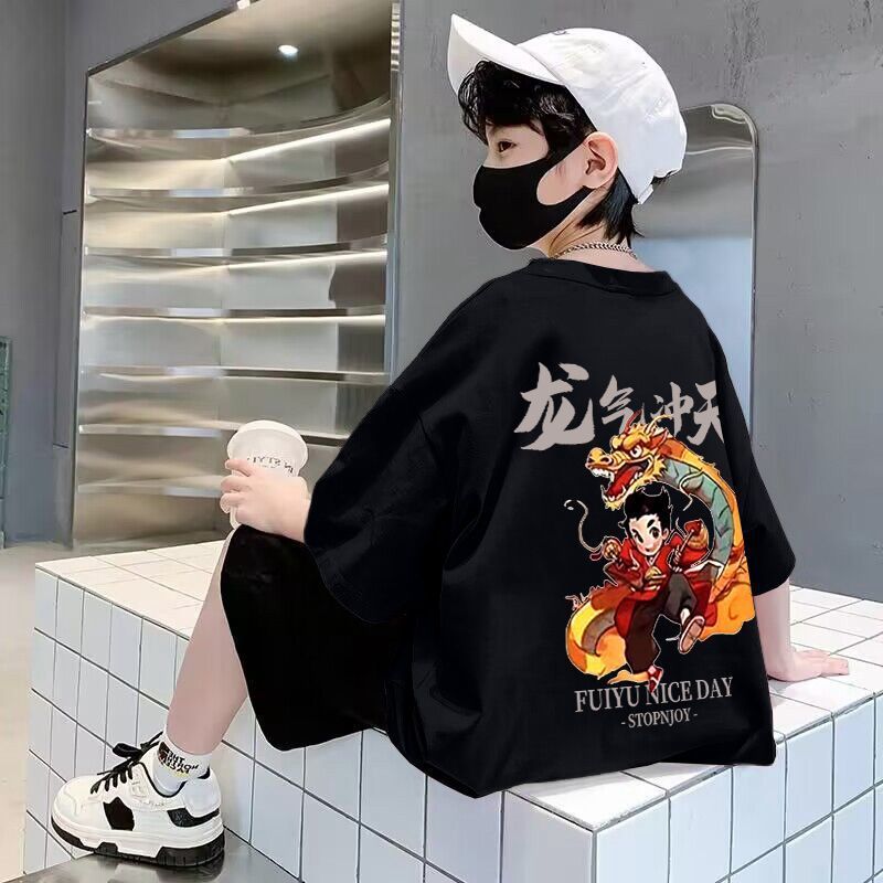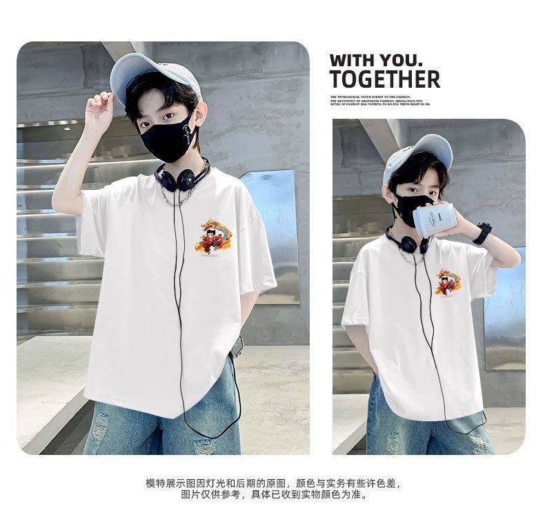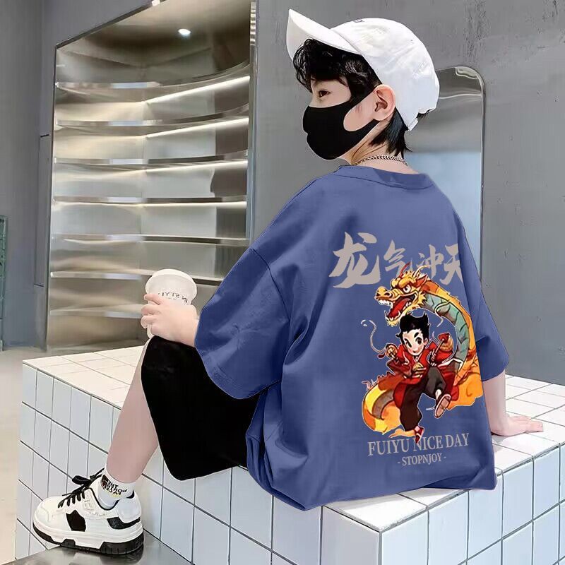 코튼 보이즈의 반팔 티셔츠 여름 새로운 유행 멋진 잘 생긴 느슨한 손짓 만화 중첩 어린이 반소매 어린이 유행스토어 가기