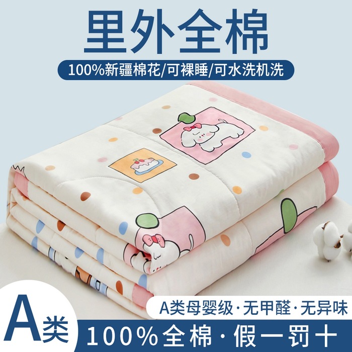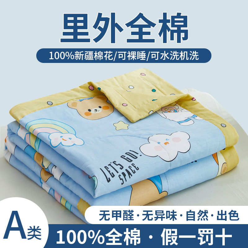 클래스 A 코튼 여름 시원한 이불 어머니와 유아 학년 순수 코튼 에어컨 이불 기계 세탁기 여름 이불 싱글 더블 여름 얇은 이불스토어 가기