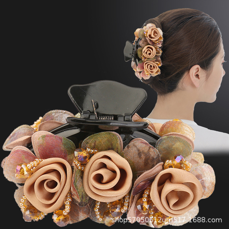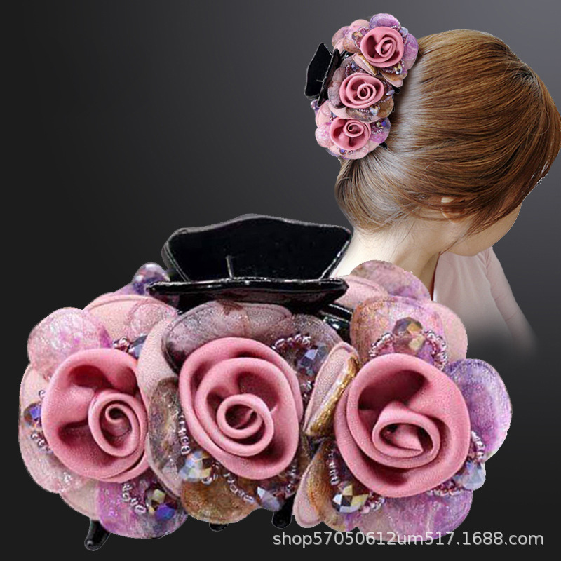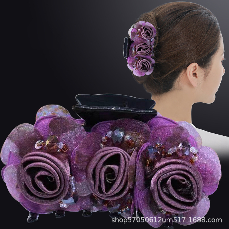 3 꽃 머리핀 클립 헤드웨어 숙녀 신선한 헤어 액세서리 패브릭 클립 중간 크기의 머리 우아한 꽃 머리 클립 클립 클립 클립
