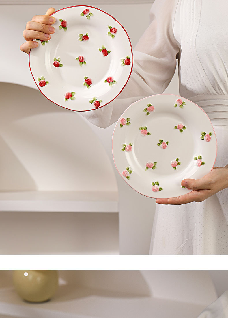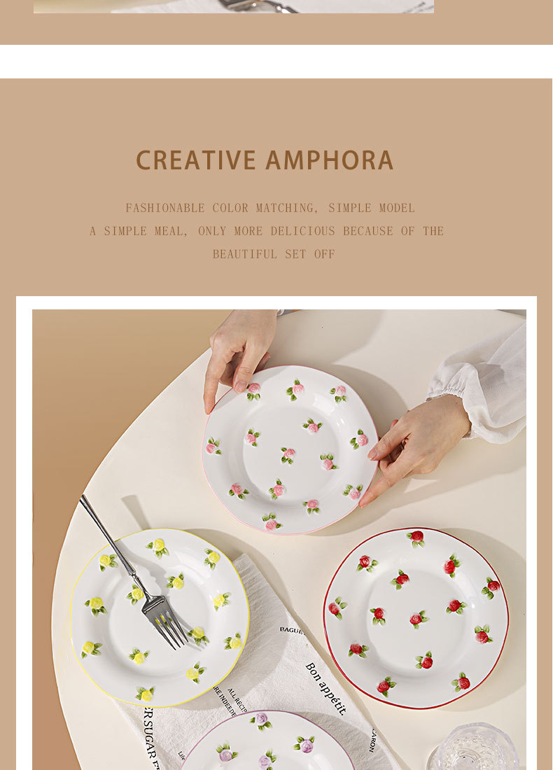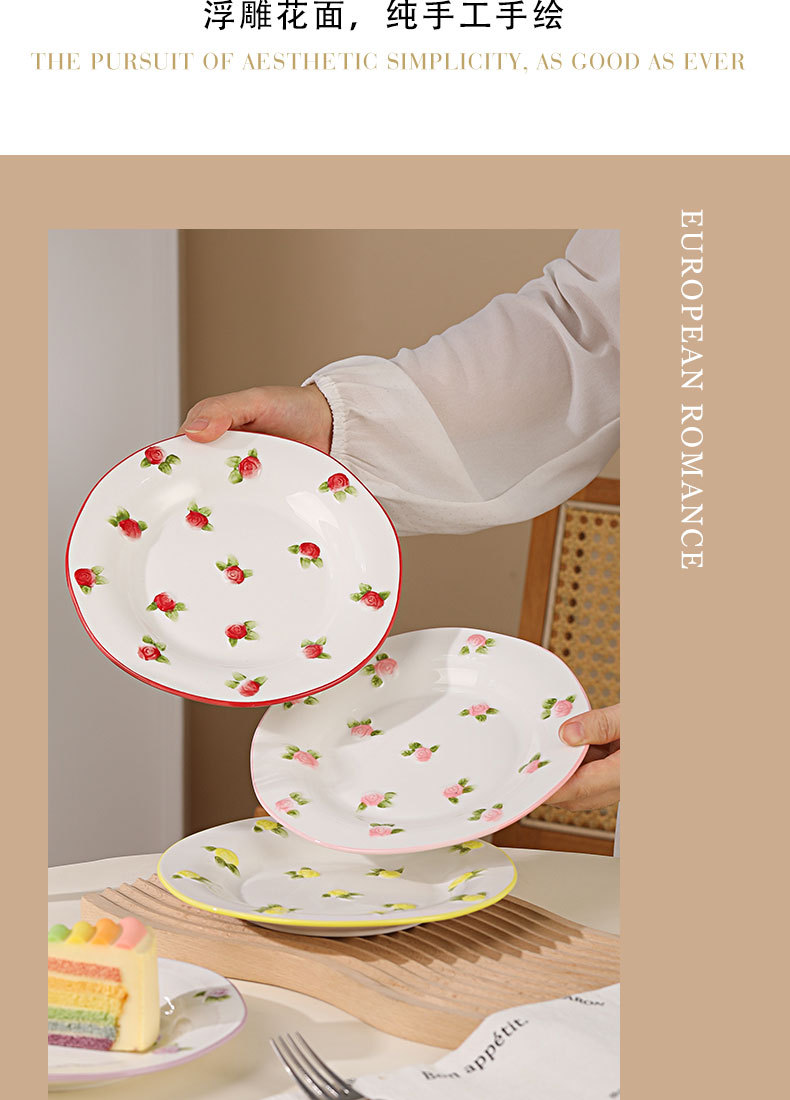 양각 손으로 그린 세라믹 디스크 높은 색상 값 Dim Sum 케이크 플레이트 고온 저항 무연 유약 색상 환영 과일 플레이트스토어 가기