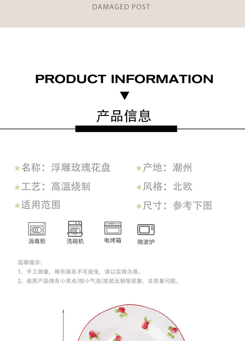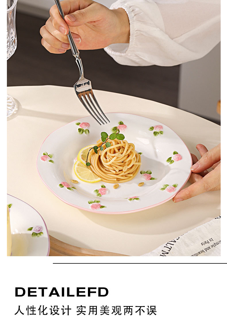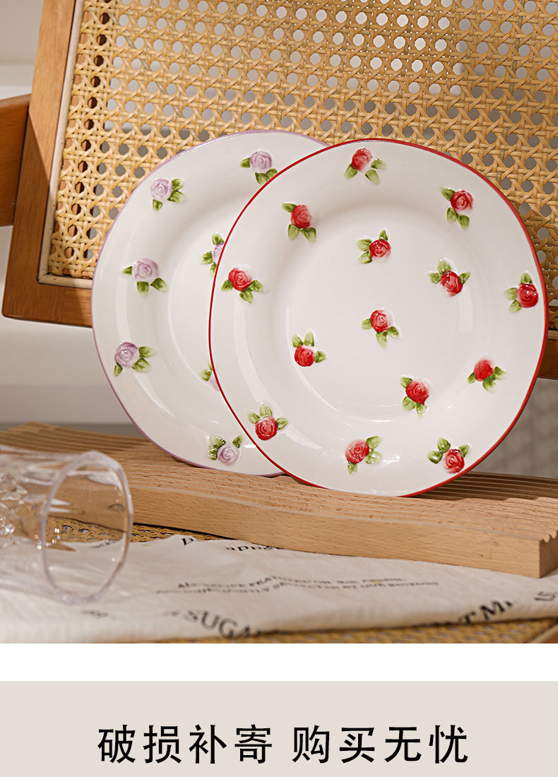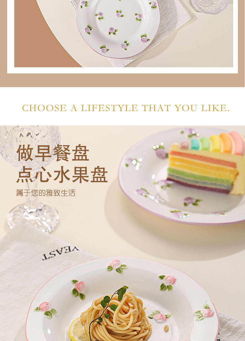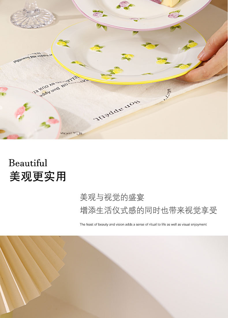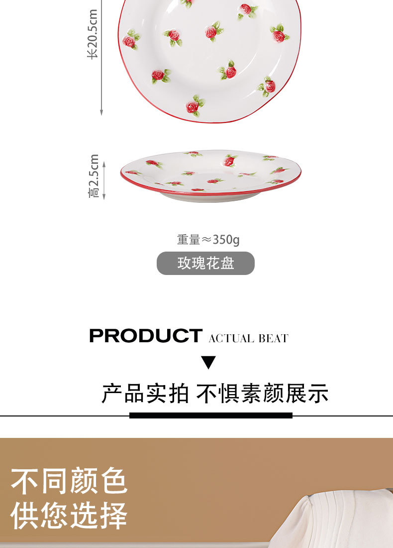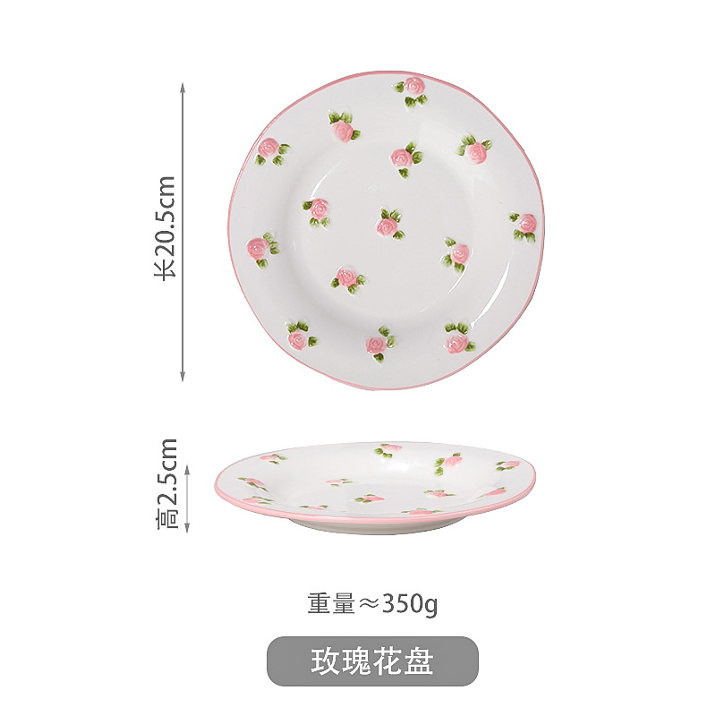 浮雕手绘陶瓷圆盘高颜值点心蛋糕盘耐高温无铅釉下彩迎宾水果盘子