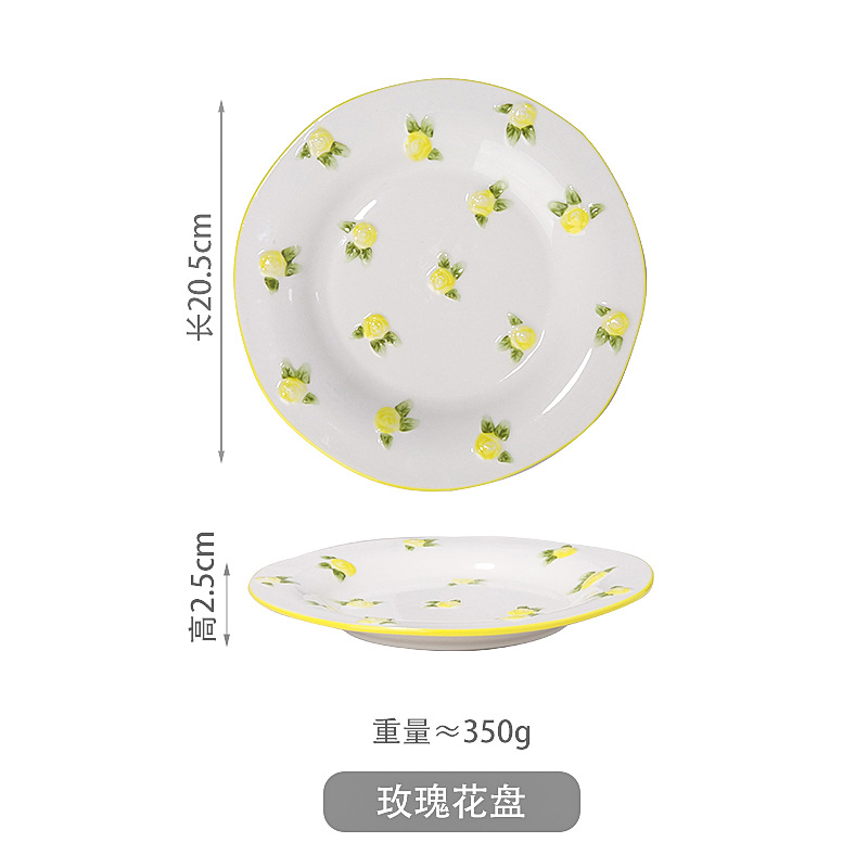 ins风餐盘家用陶瓷盘轻奢餐厅西餐牛排盘小清新柠檬蛋糕摆盘托盘
