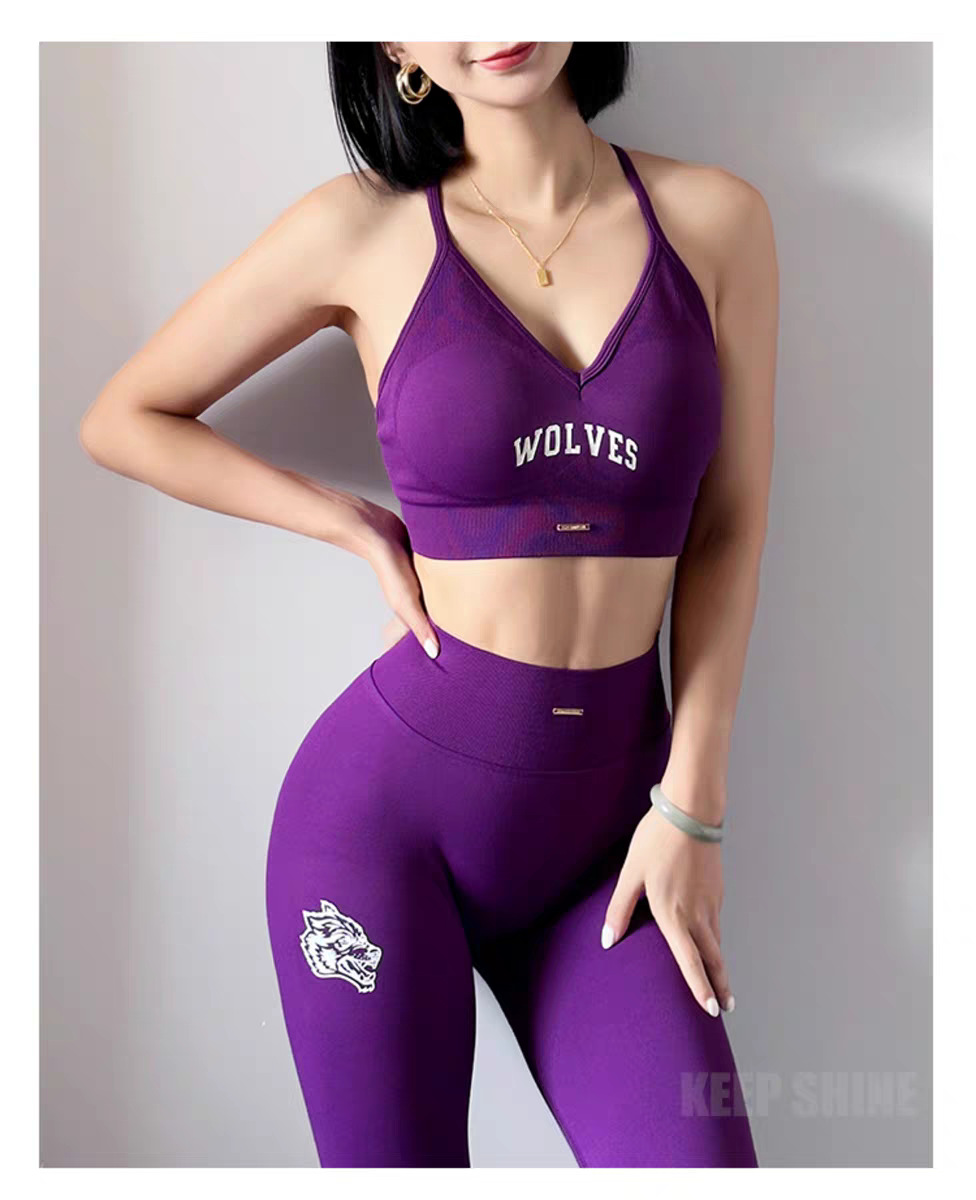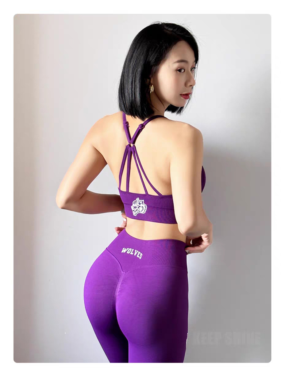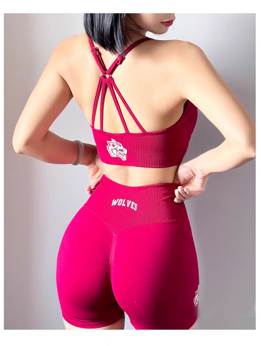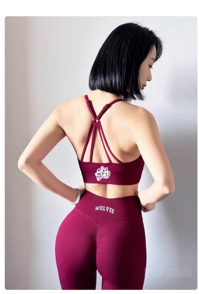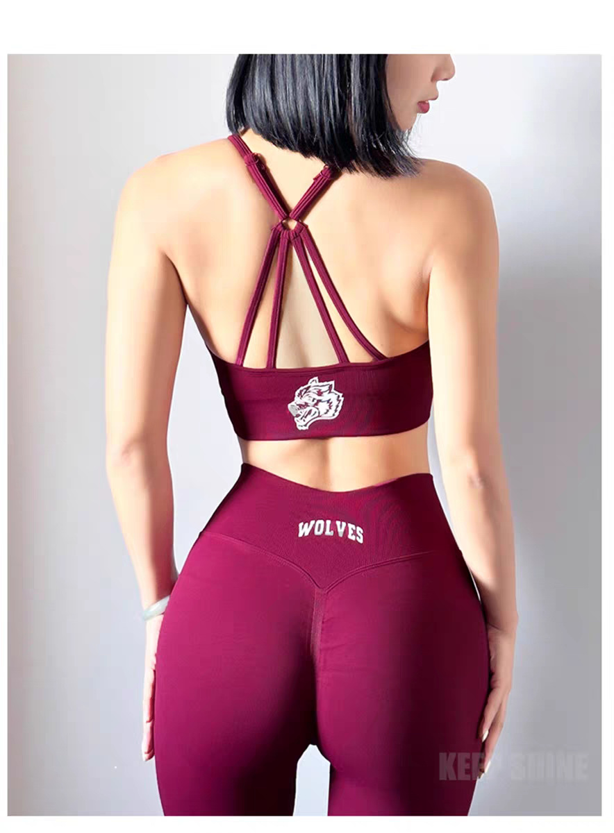 늑대 머리 인쇄 스포츠 세트 여성 달리기 충격 방지 아름다운 등받이 복숭아 엉덩이 슬림 핏 슬리밍 3 부 바지 새로운