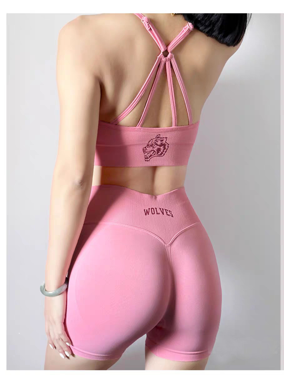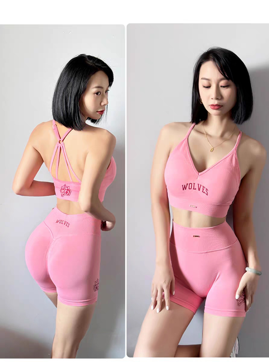 늑대 머리 인쇄 스포츠 세트 여성 달리기 충격 방지 아름다운 등받이 복숭아 엉덩이 슬림 핏 슬리밍 3 부 바지 새로운스토어 가기