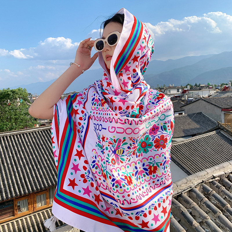여행 및 놀이 성격 야외 착용 풀오버 큰 망토 민족 복고풍 비 스타 편안한 비치 타월 목도리