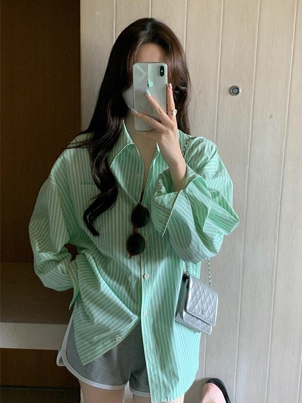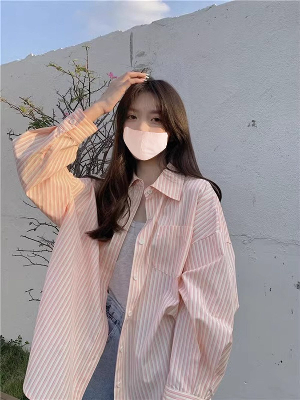 핑크 줄무늬 선스크린 셔츠 여성용 얇은 여름 아우터웨어 느슨한 게으른 스타일 긴소매 셔츠 카디건 코트 탑