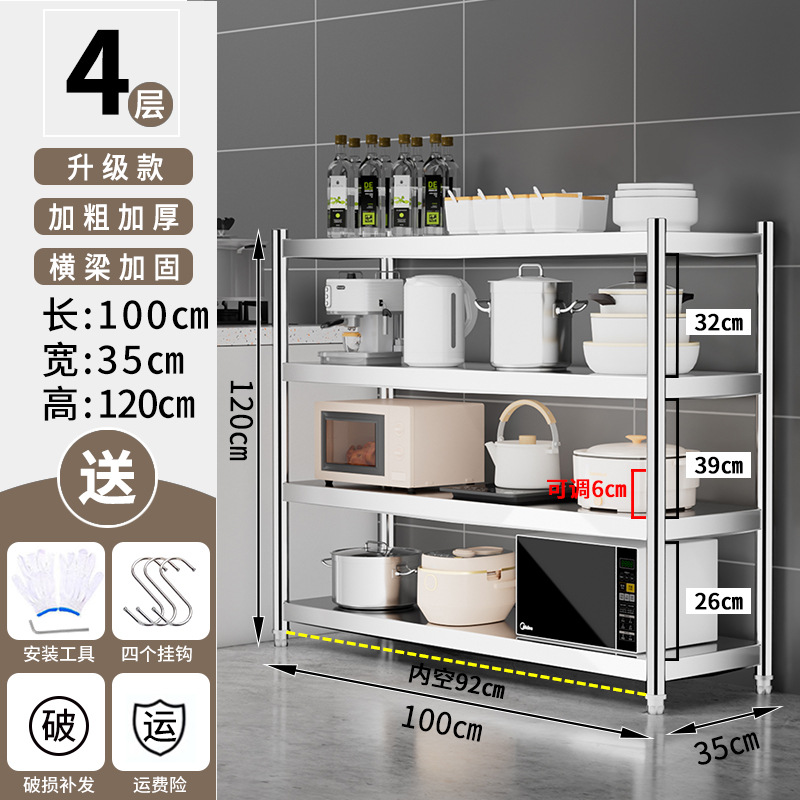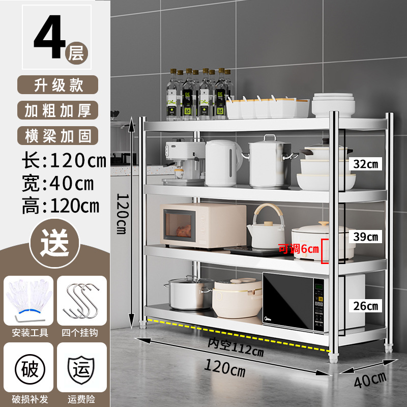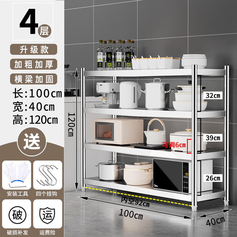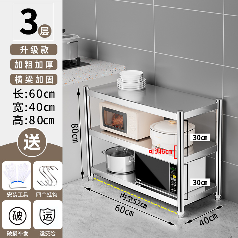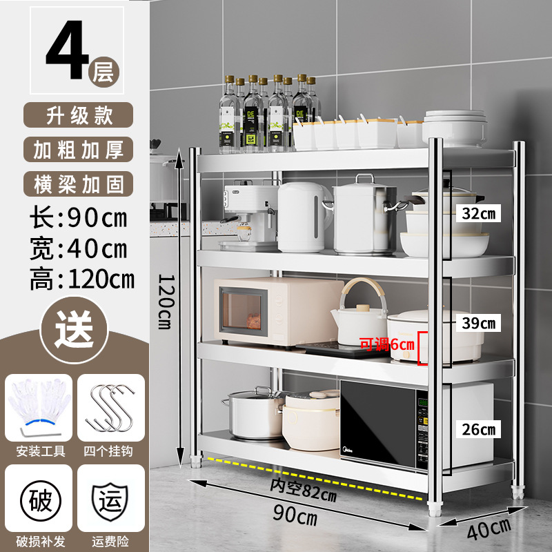 스테인레스 스틸 주방 보관 랙 바닥 다층 다기능 선반 캐비닛 냄비 전자 레인지 보관스토어 가기