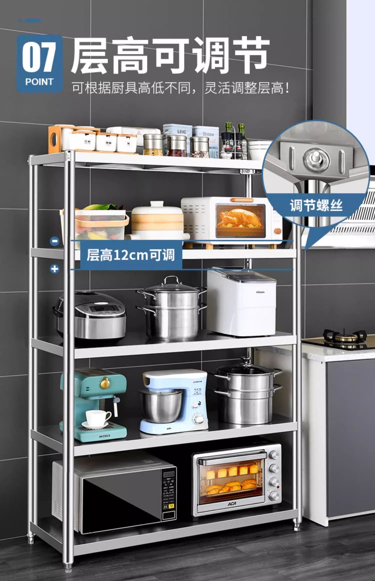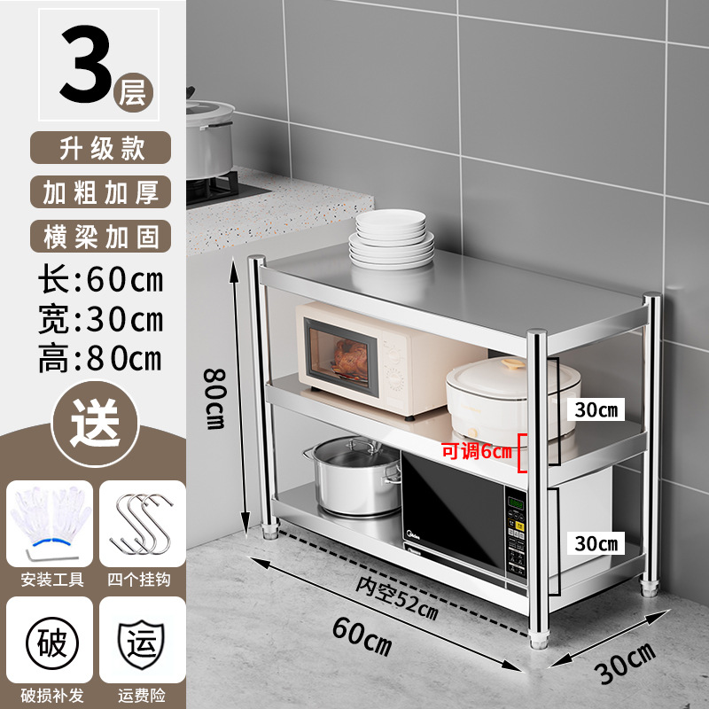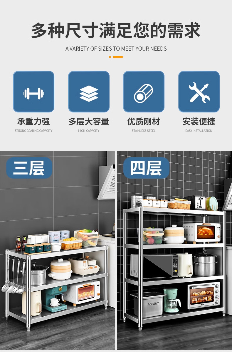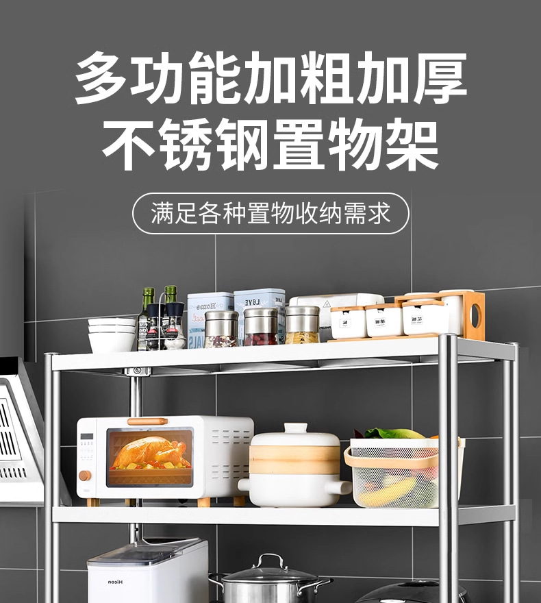 스테인레스 스틸 주방 보관 랙 바닥 다층 다기능 선반 캐비닛 냄비 전자 레인지 보관스토어 가기