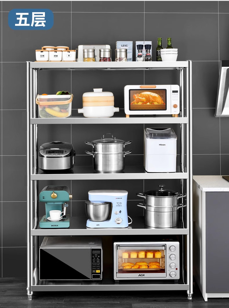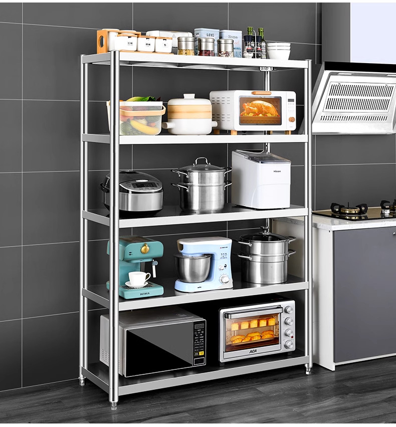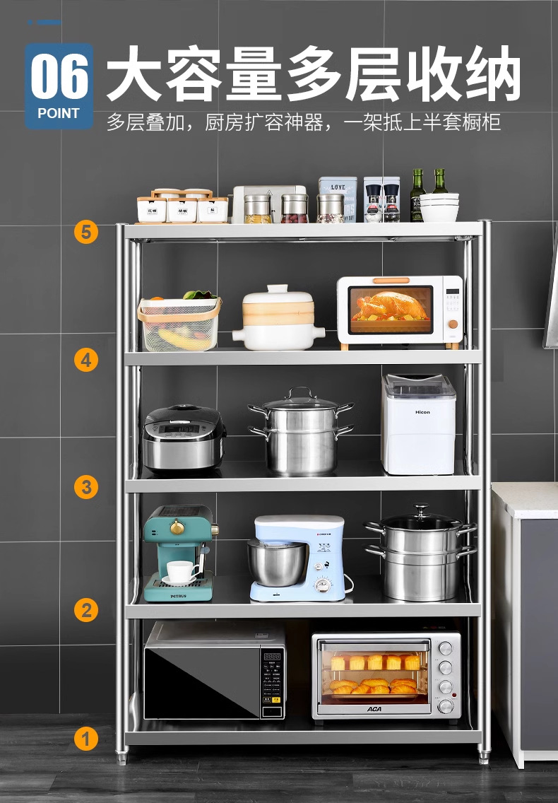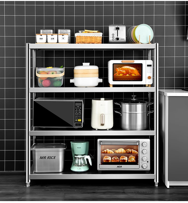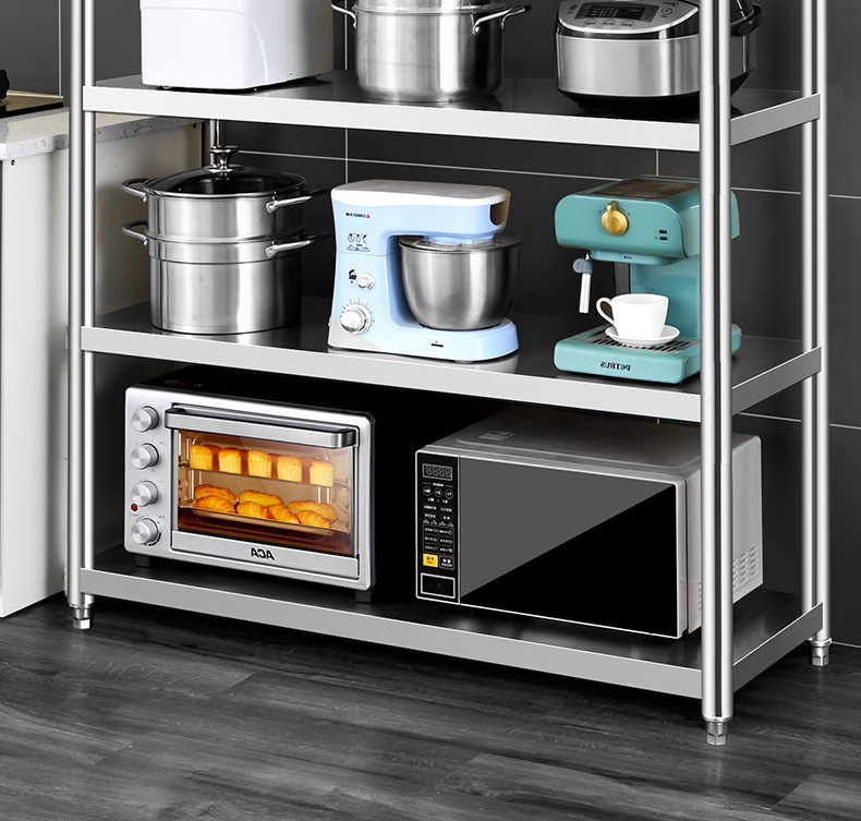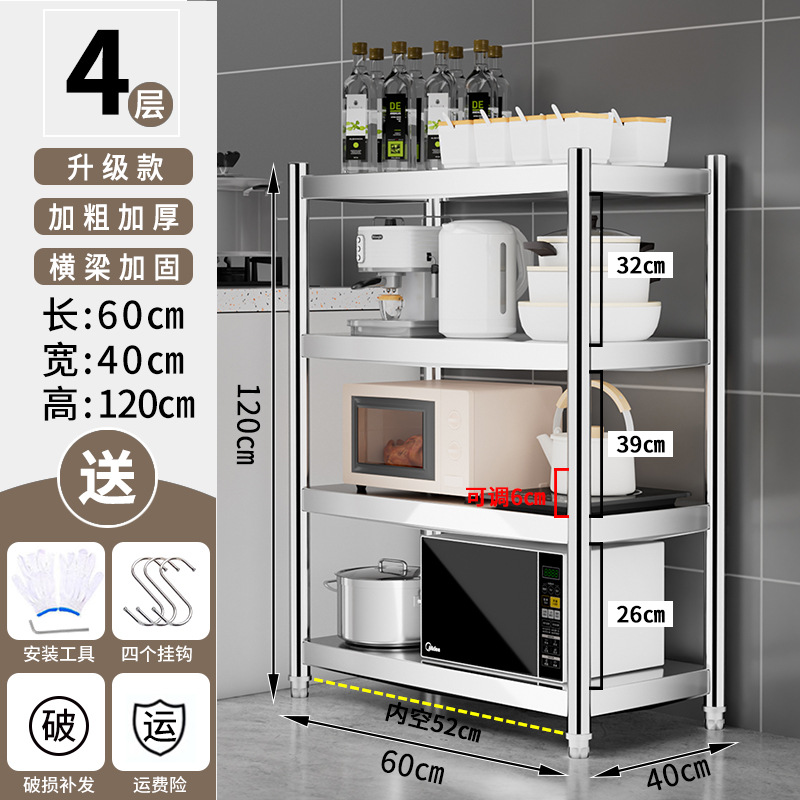 스테인레스 스틸 주방 보관 랙 바닥 다층 다기능 선반 캐비닛 냄비 전자 레인지 보관
