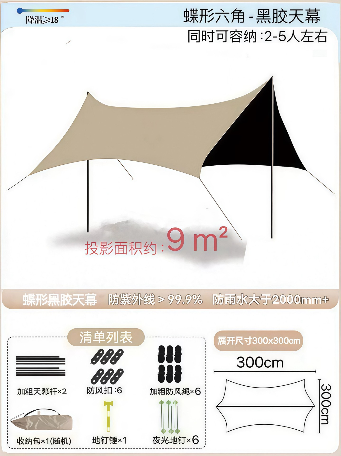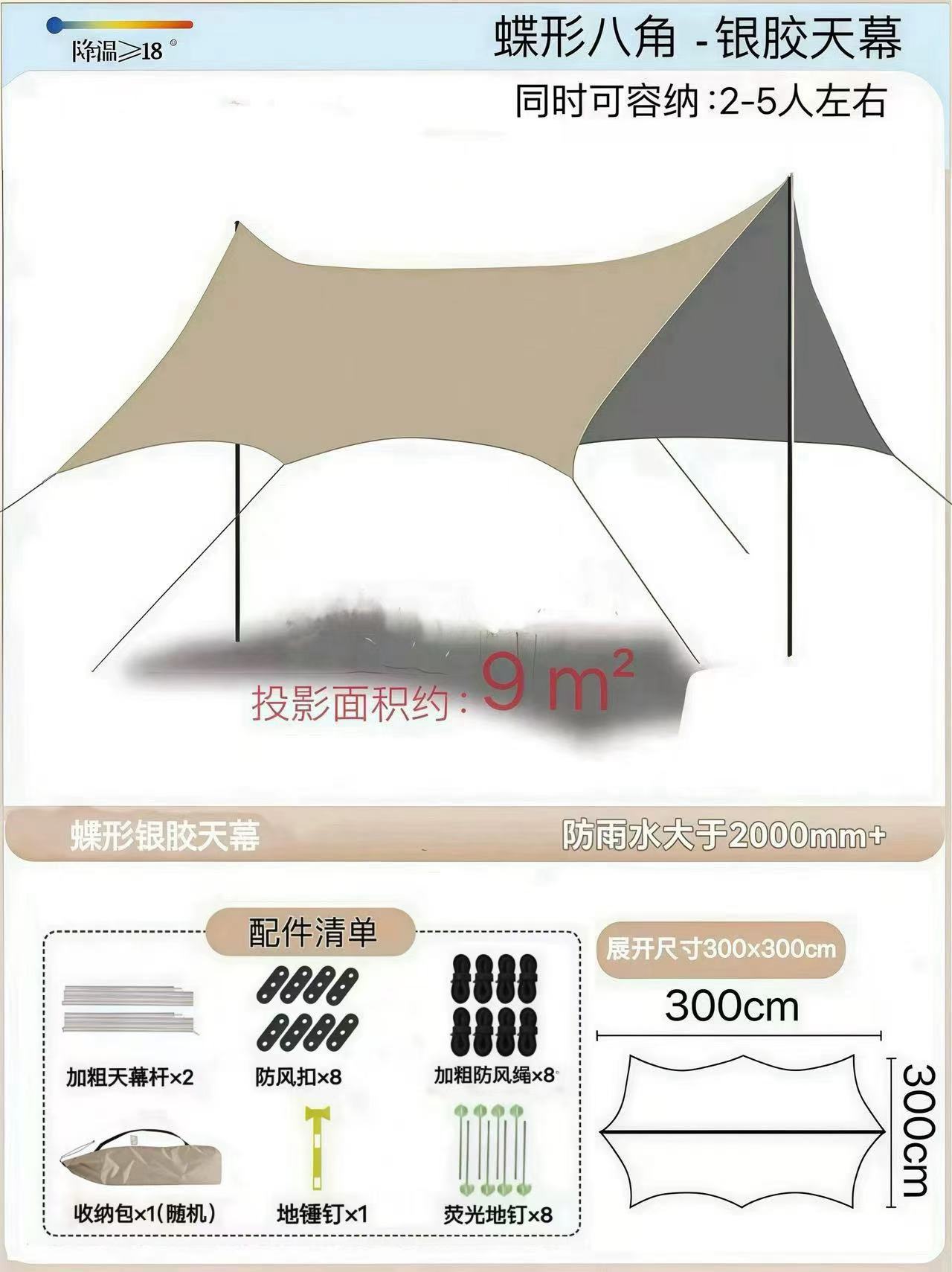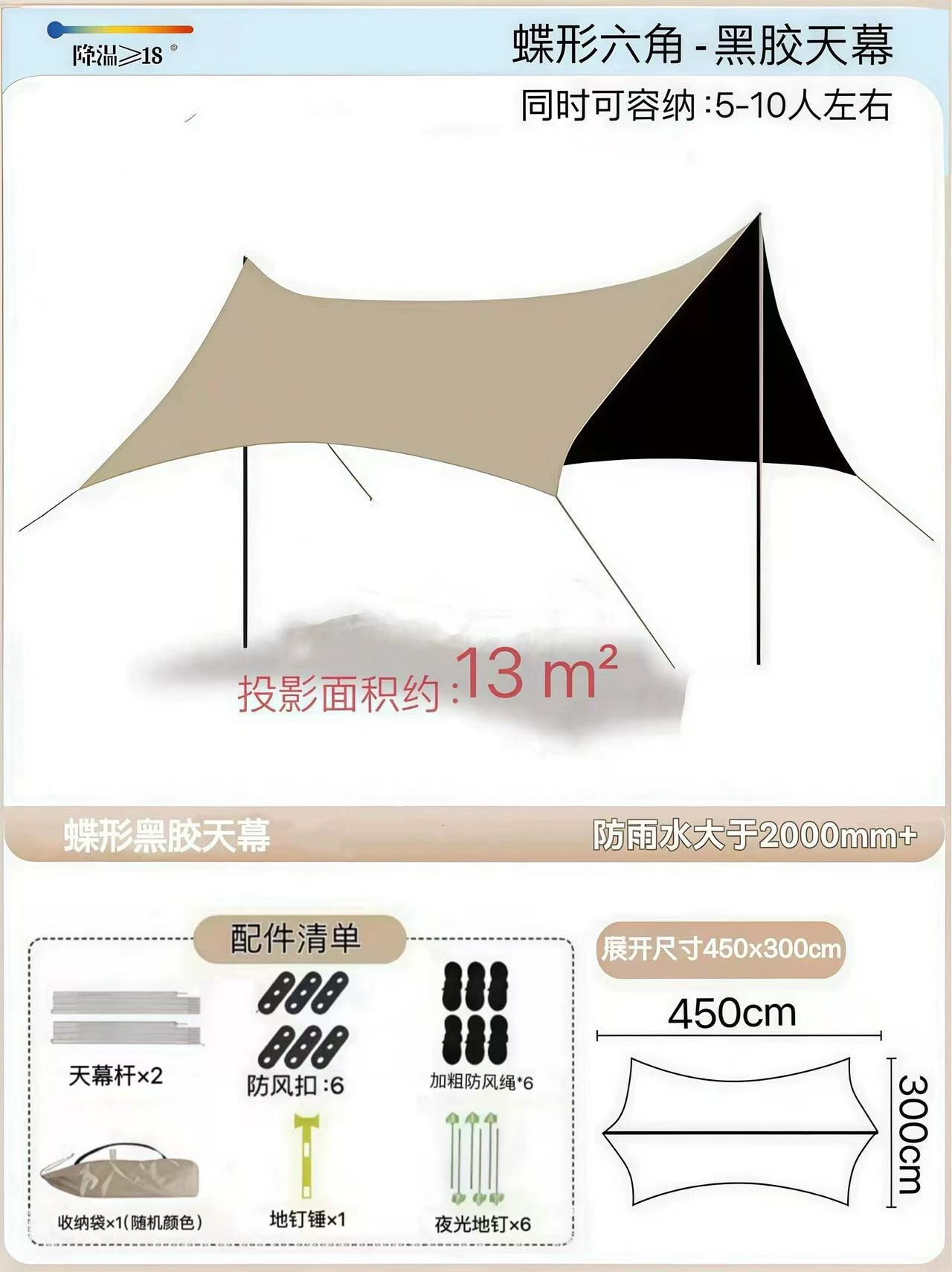 검은 고무 큰 캐노피 텐트 방비 선 스크린 야외 캠핑 햇빛 그늘 큰 공간 팔각형 나비 캠핑 햇빛