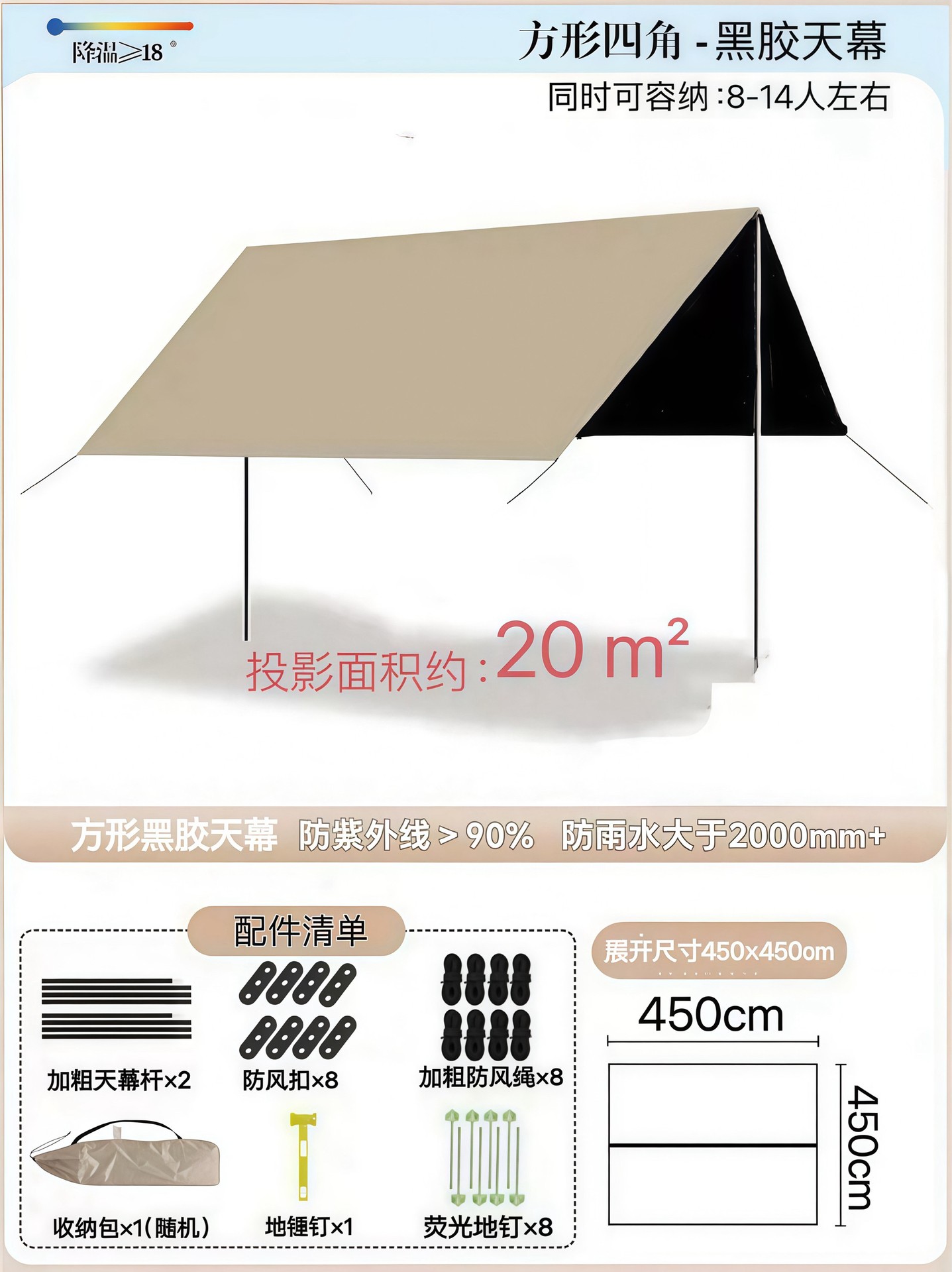 검은 고무 큰 캐노피 텐트 방비 선 스크린 야외 캠핑 햇빛 그늘 큰 공간 팔각형 나비 캠핑 햇빛스토어 가기