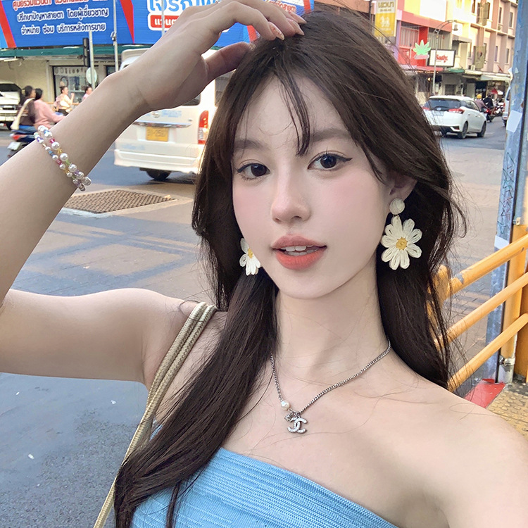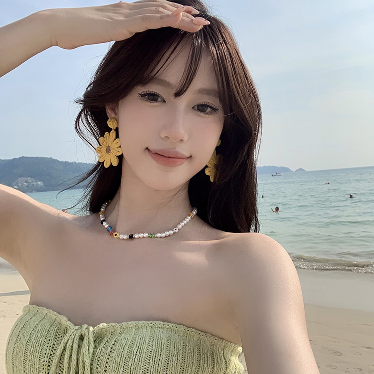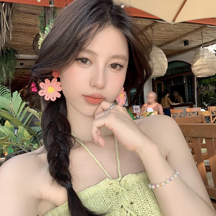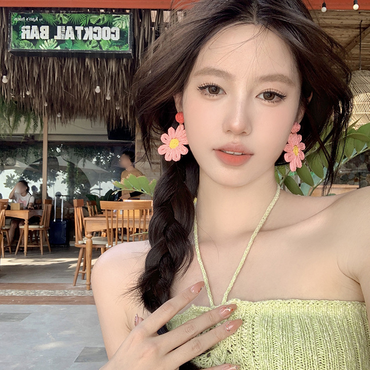 해변 휴양지 스타일 해바라기 귀걸이 여성용 2025 신상 인기 귀걸이 미니멀리스트 스타일 과장된 꽃 귀걸이