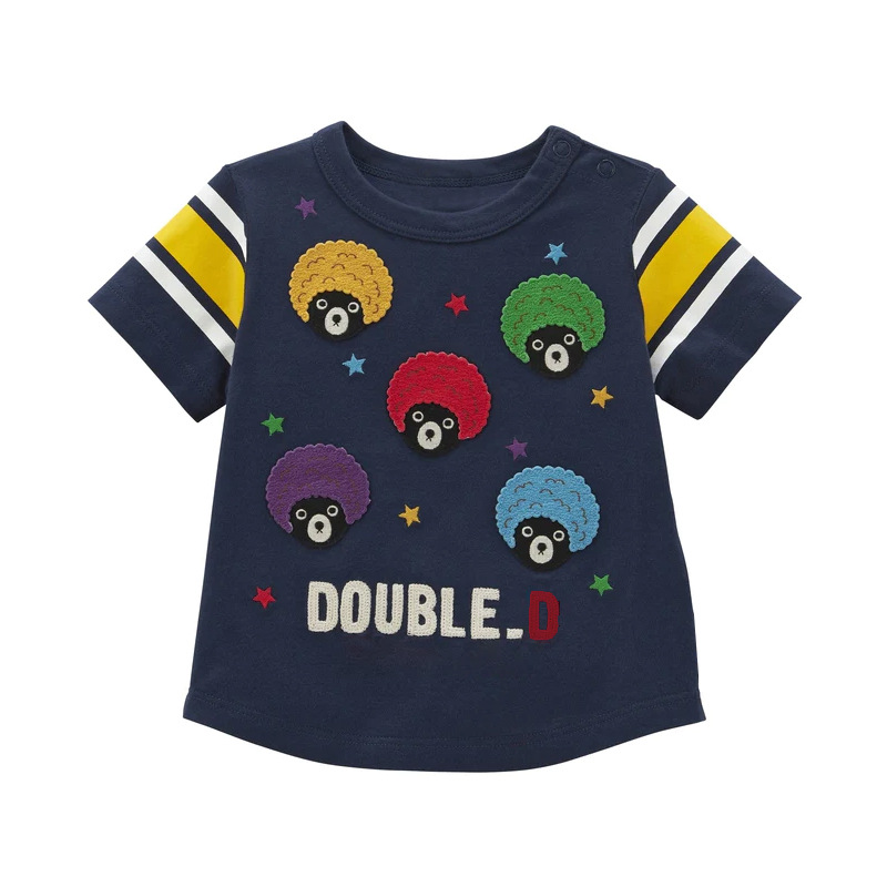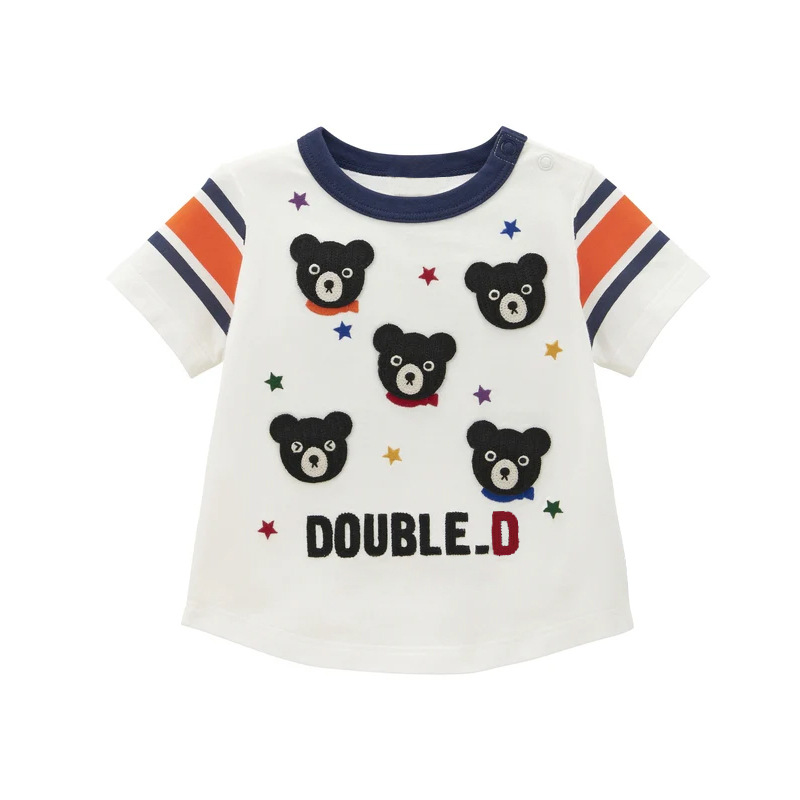 新款男女童卡通黑熊字母徽章刺绣短袖