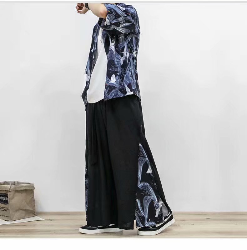 한 요소 중국 스타일 느슨한 크레인 바지 남성 스트레이트 한푸 바지 레트로 스타일 요정 바지 캐주얼 자른 바지스토어 가기
