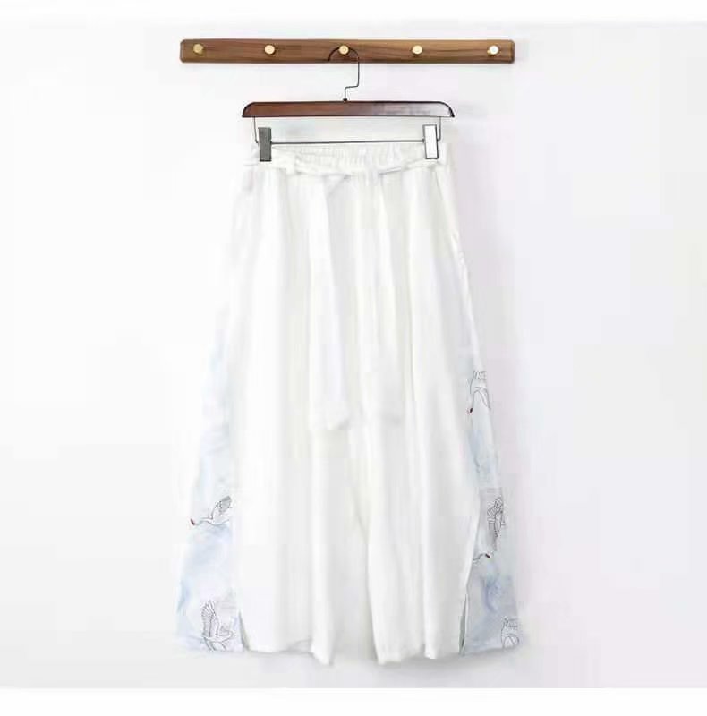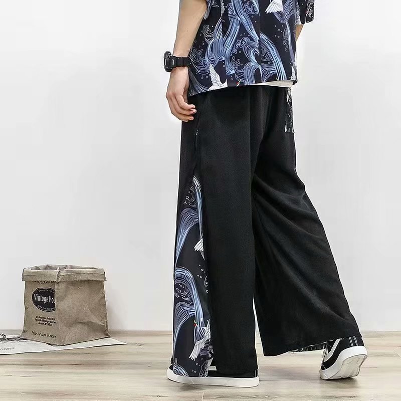 한 요소 중국 스타일 느슨한 크레인 바지 남성 스트레이트 한푸 바지 레트로 스타일 요정 바지 캐주얼 자른 바지