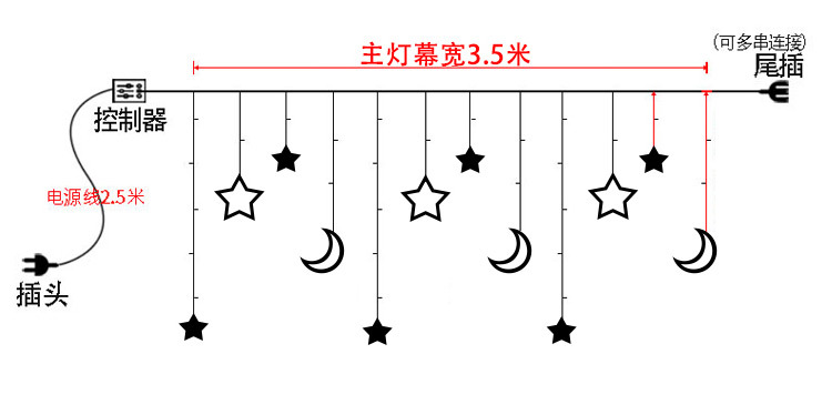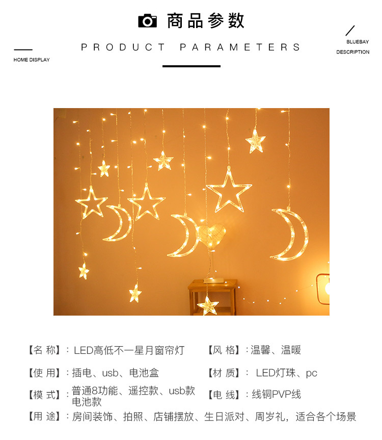 Led 커튼 조명 휴일 조명 분위기 조명 장식 조명 야외 조명 문자열 다채로운 야간 조명