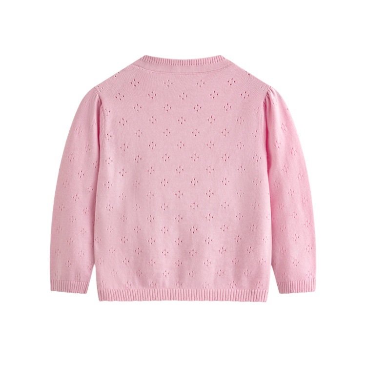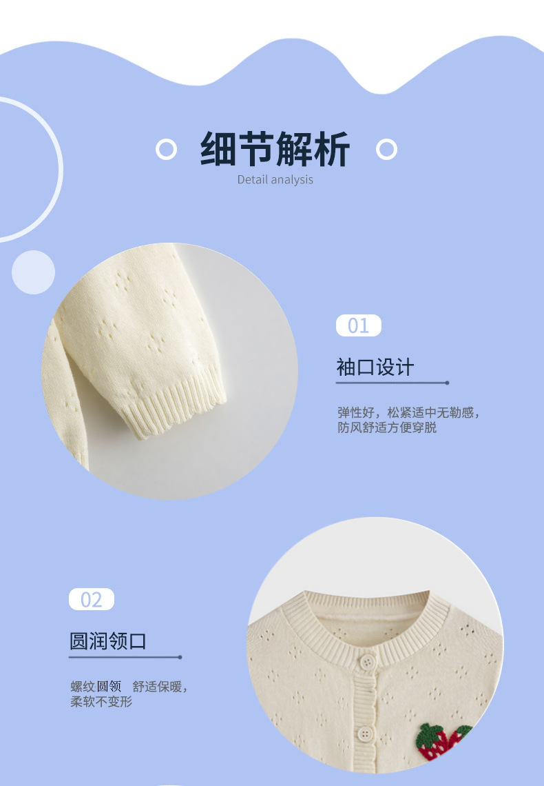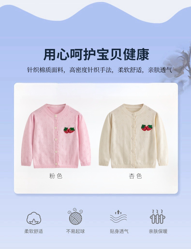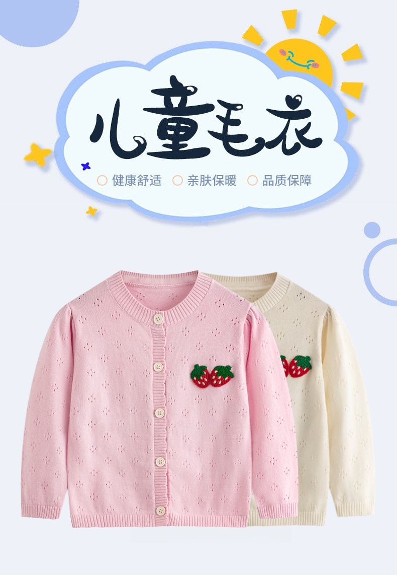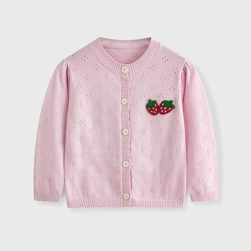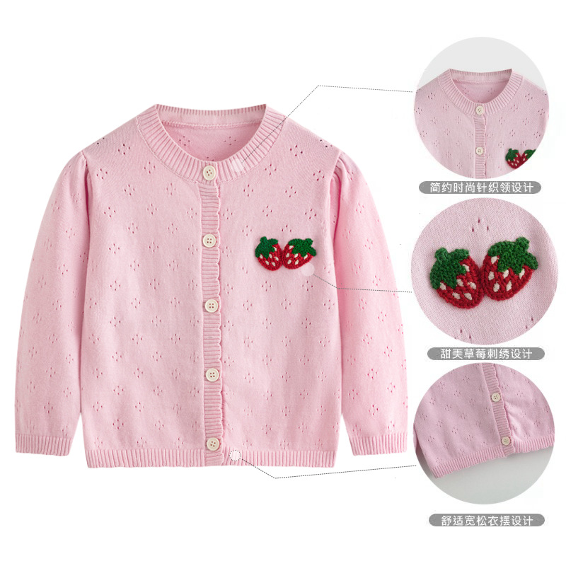 봄과 여름 얇은 소녀 중공 니트 카디건 아기 수 놓은 딸기 순수 코튼 스웨터 재킷 어린이 에어컨 셔츠