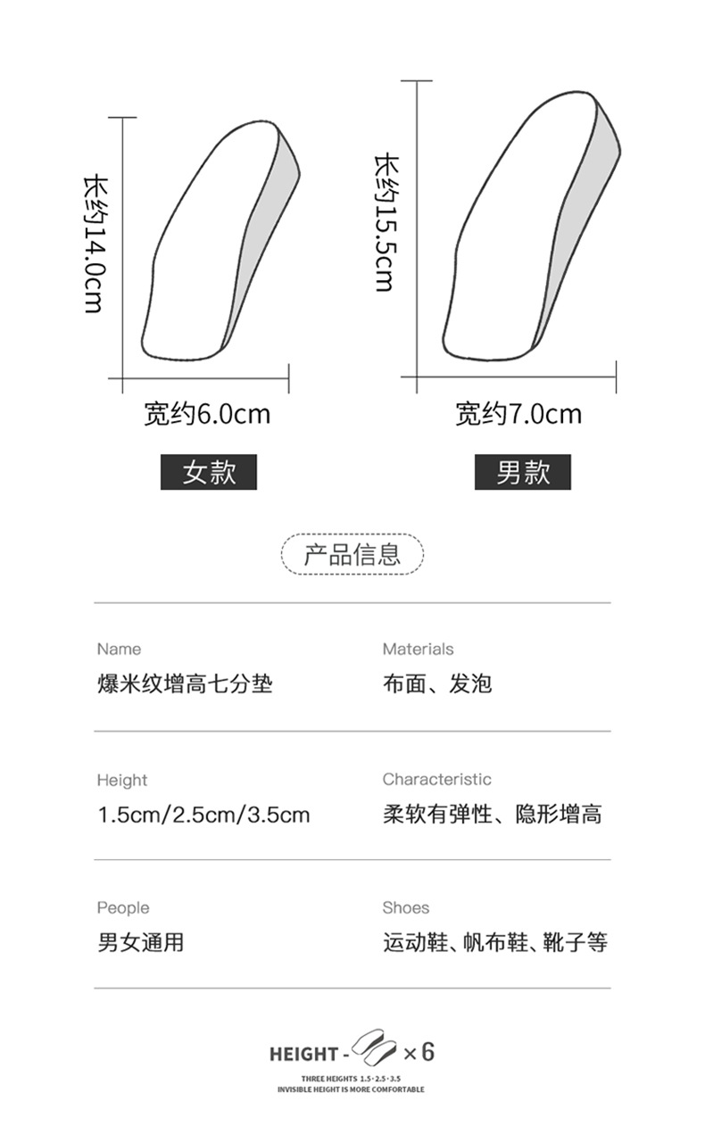 McGaole 보이지 않는 내부 높이 증가 임박 편안한 피곤하지 않은 발 높이 증가 패드 높이 증가 깔창 땀 흡수 아치 남성 및 여성 지원스토어 가기