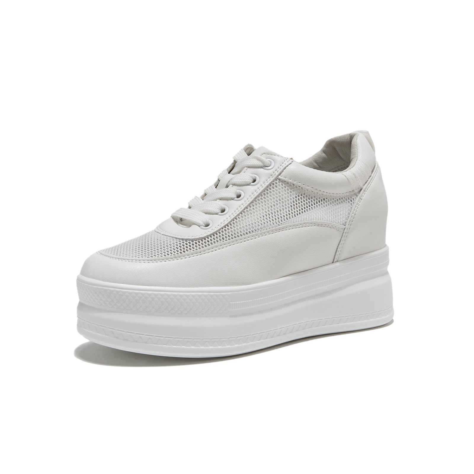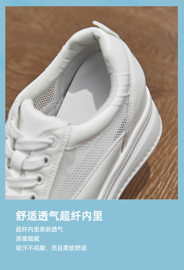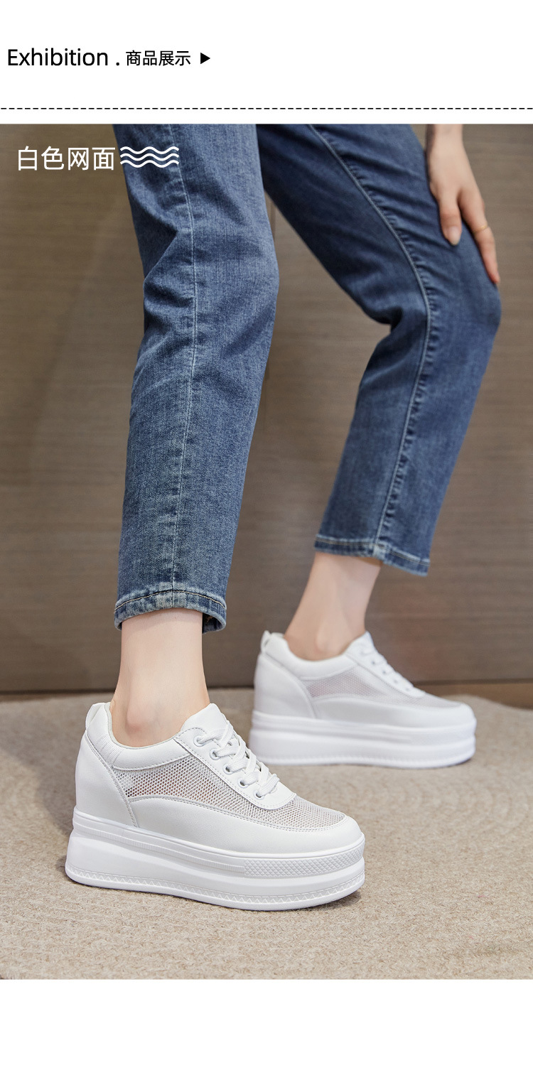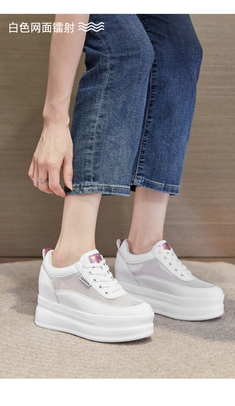 2025 봄 여름 신상 천연 가죽 화이트 슈즈 여성 키높이 여성화 두꺼운 밑창 플랫폼 슈즈 캐주얼 다용도 슬림핏스토어 가기