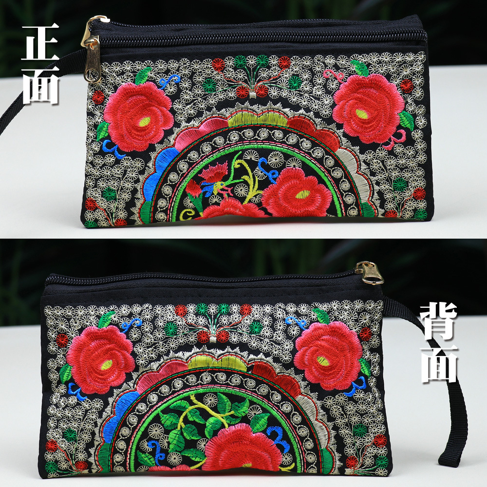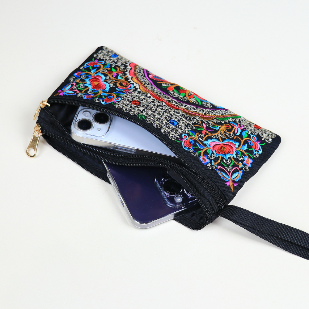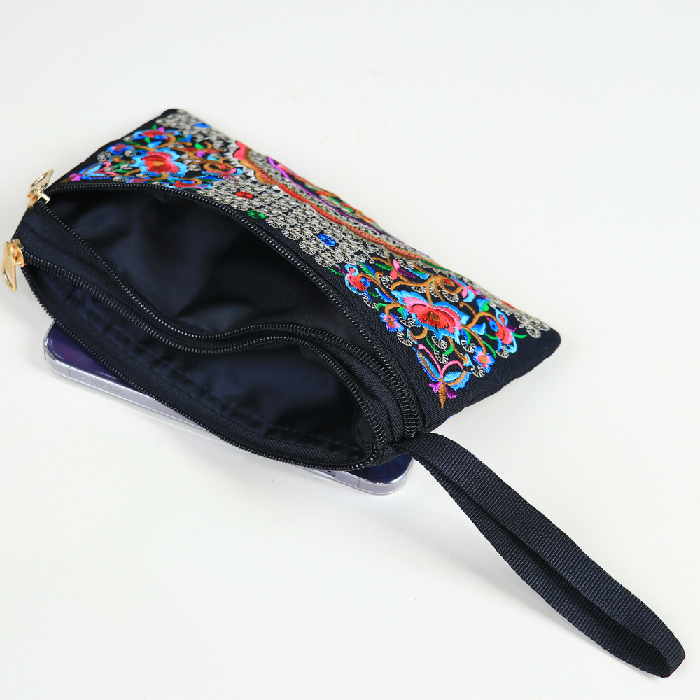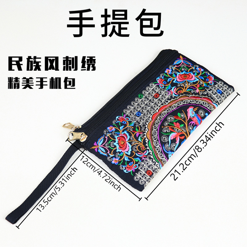 민족 자수 핸드 백 중국 스타일 휴대 전화 가방 동전 지갑 패션 캐주얼 여성 자수 작은 가방