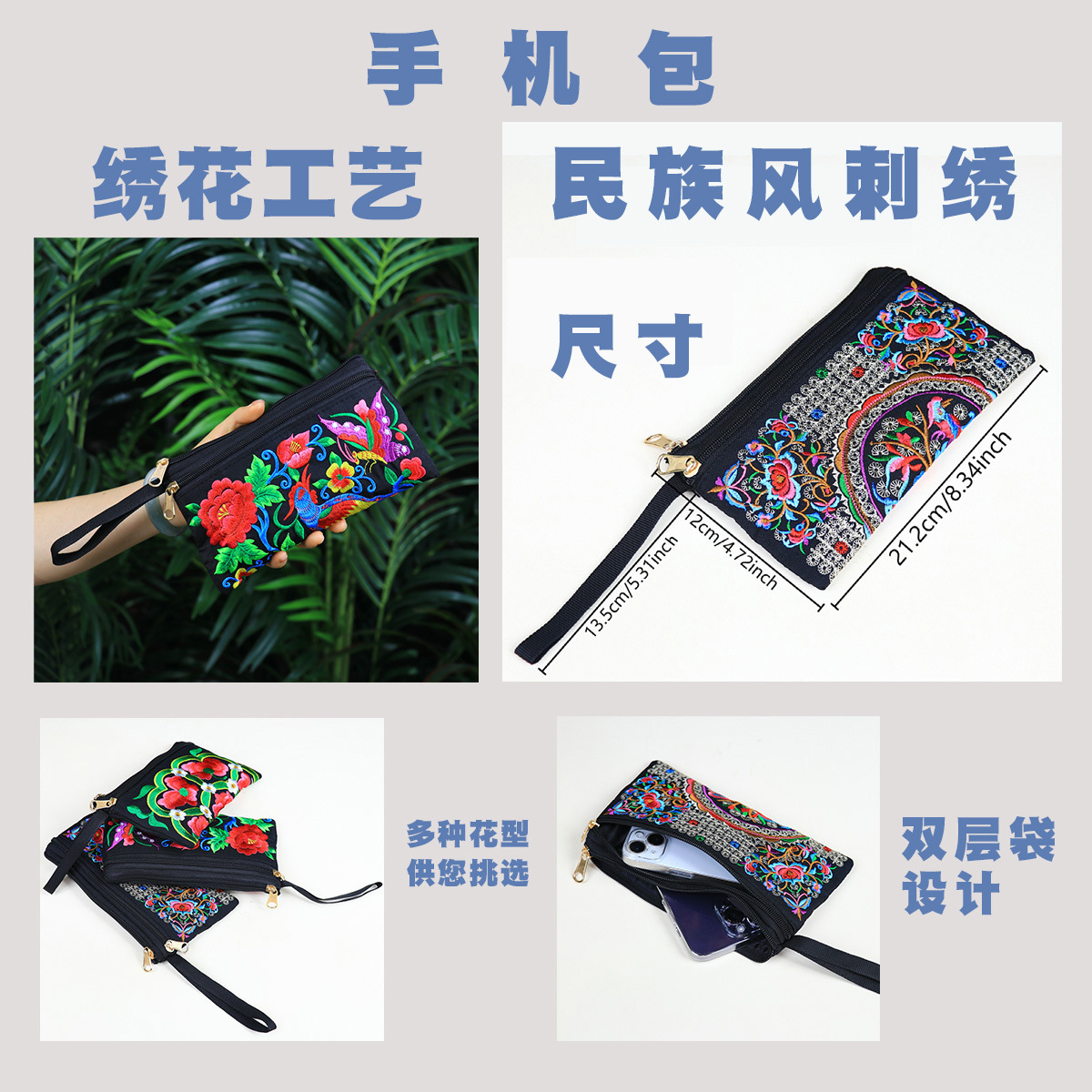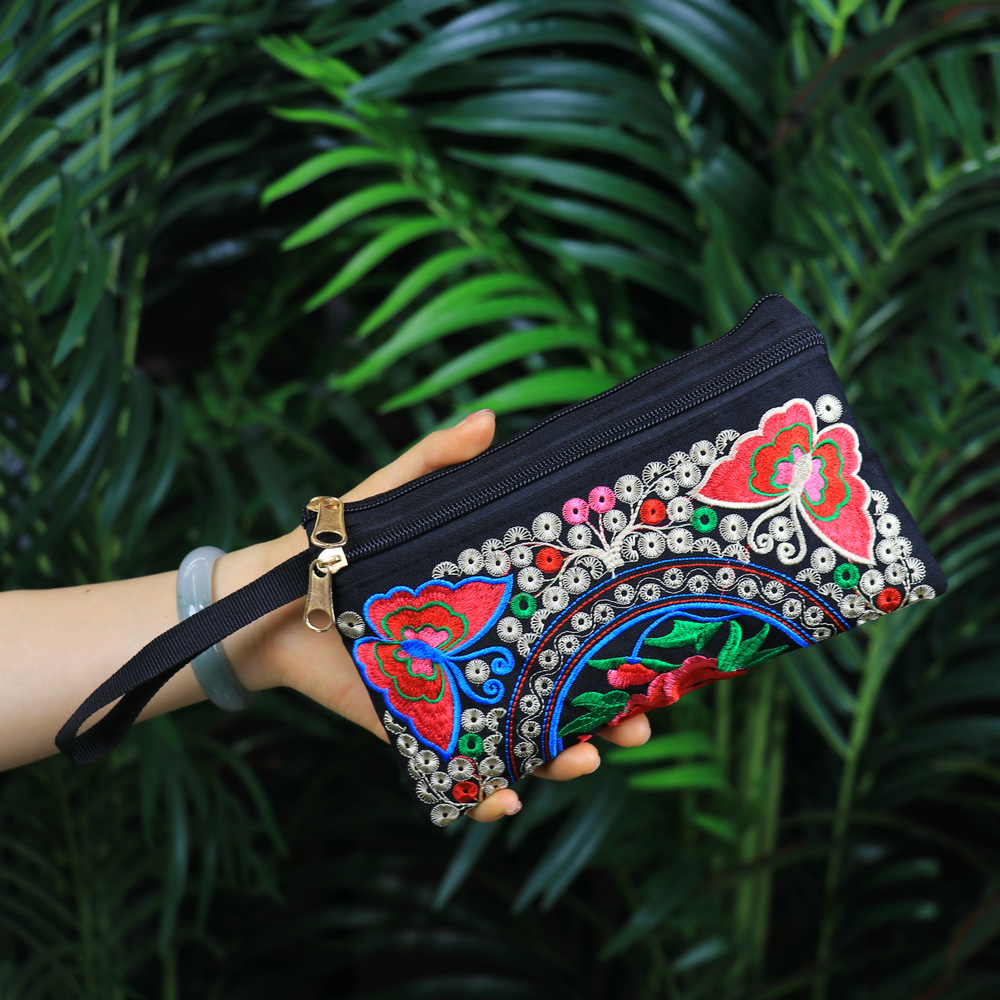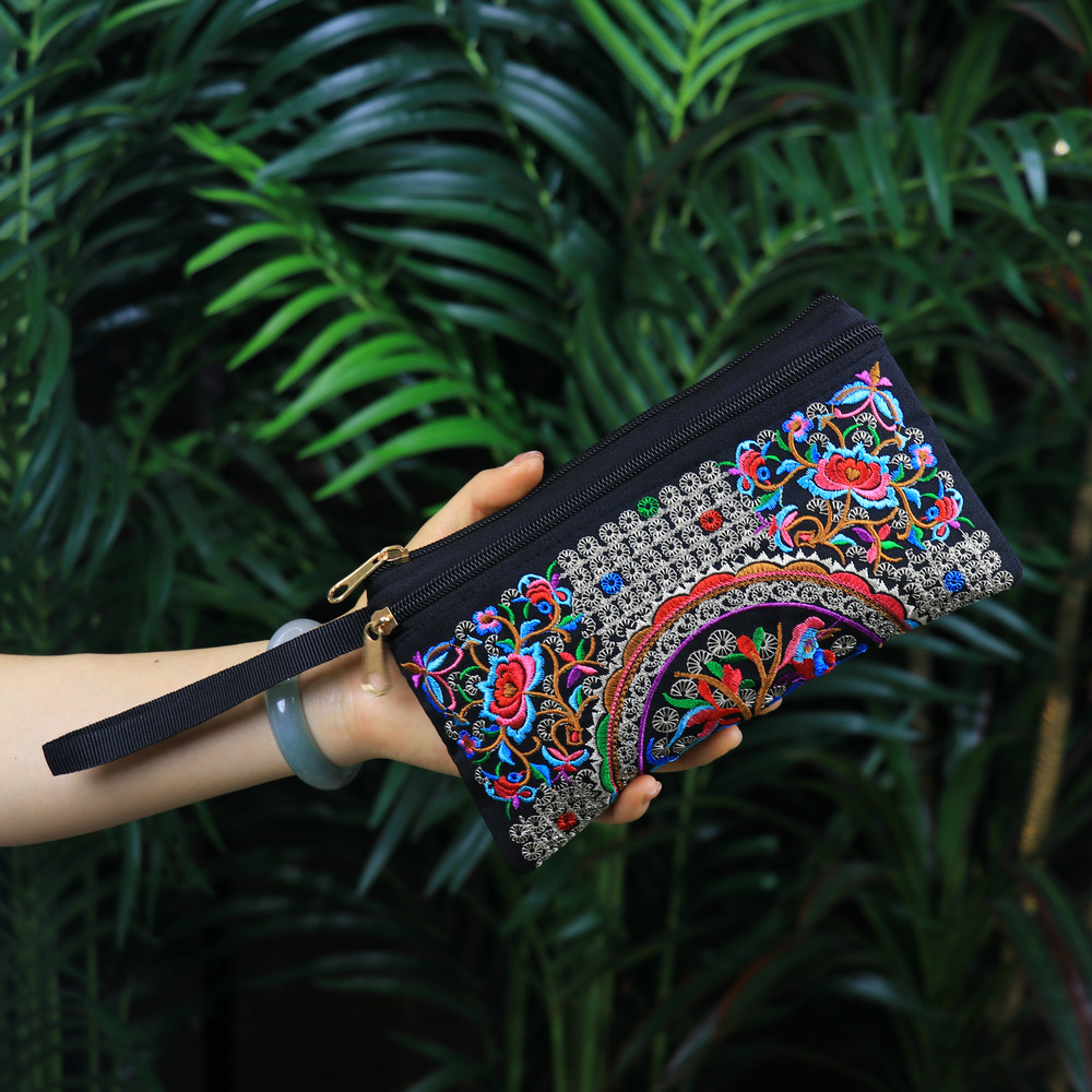 민족 자수 핸드 백 중국 스타일 휴대 전화 가방 동전 지갑 패션 캐주얼 여성 자수 작은 가방