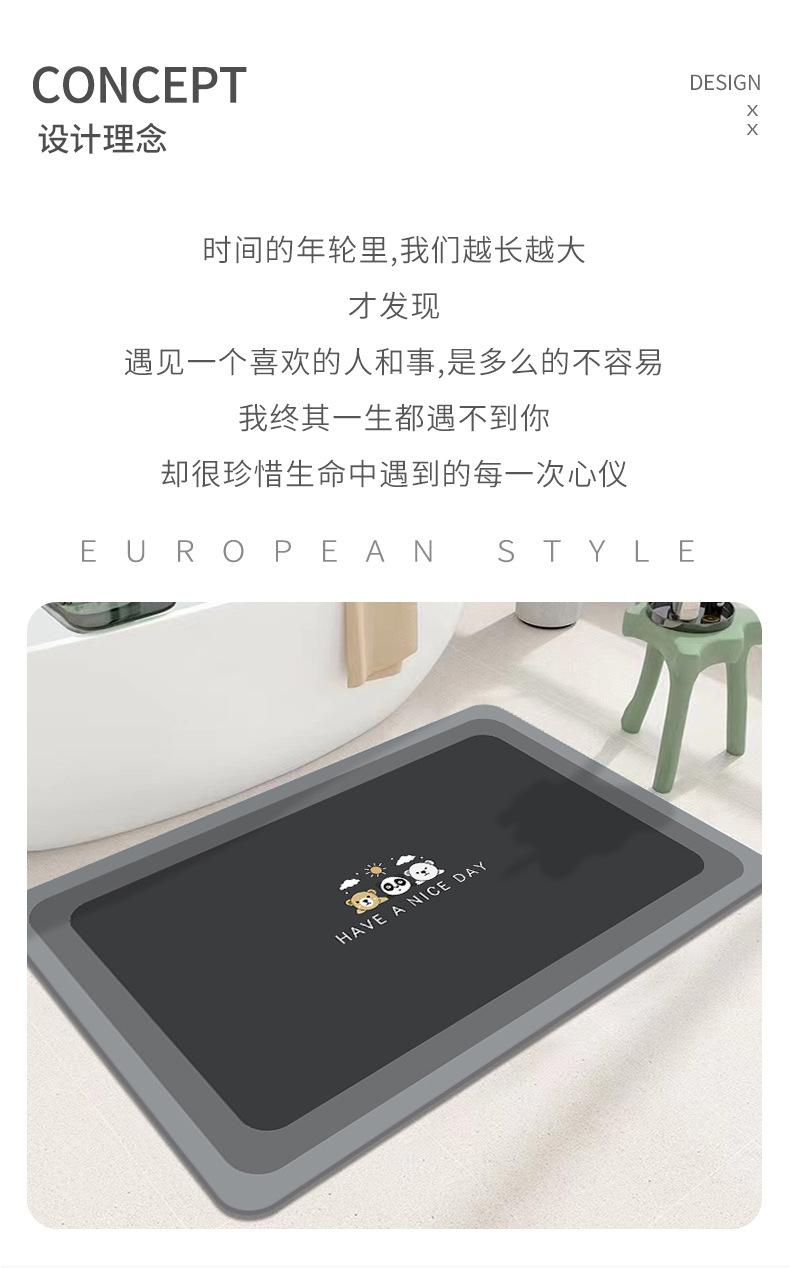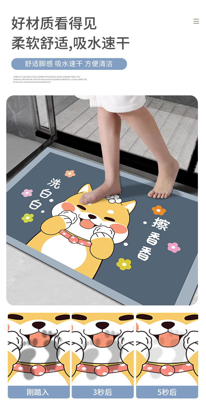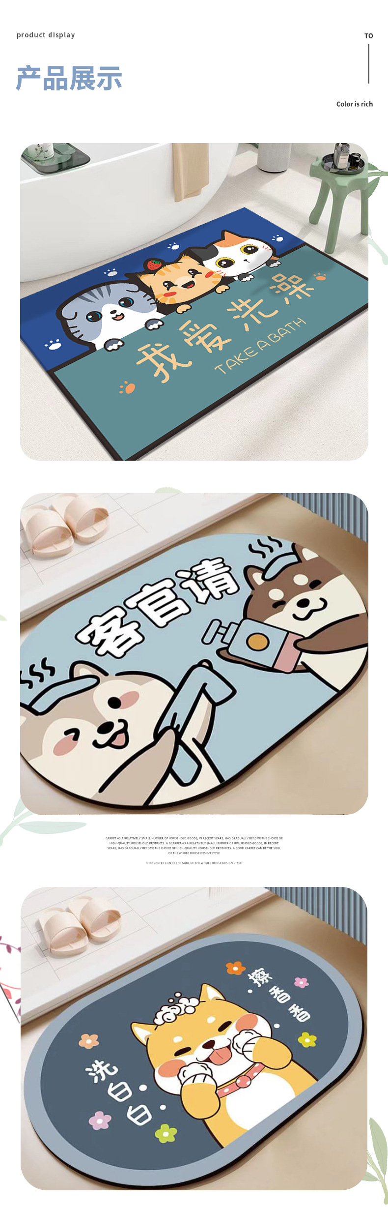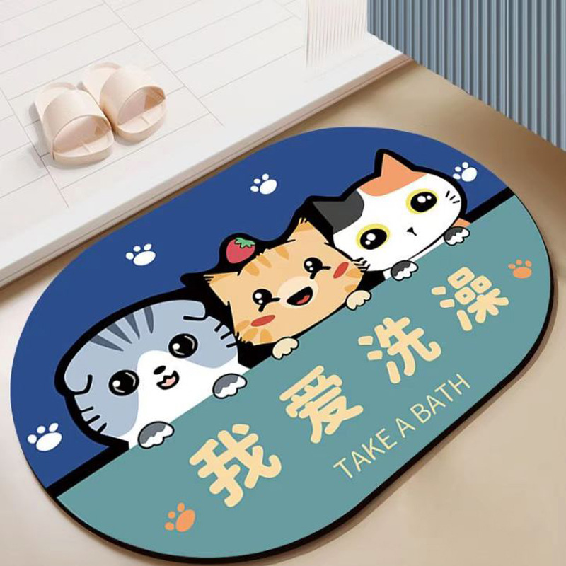 핫 스타일 욕실 바닥 매트 다이아몬드 진흙 강한 흡수성 빠른 건조 발 매트 샤워 문 미끄럼 방지 문 매트 만화 스타일 카펫