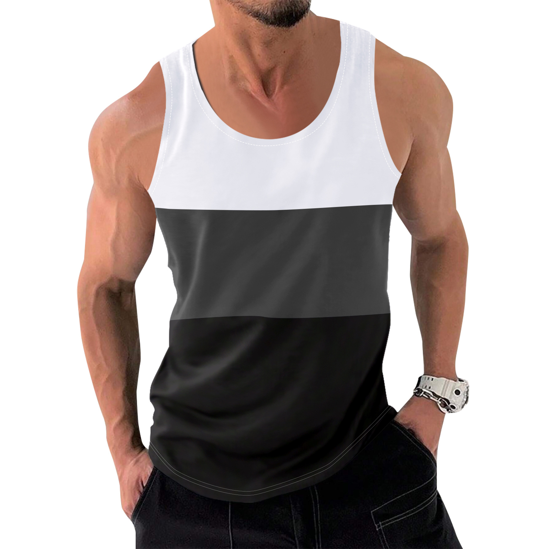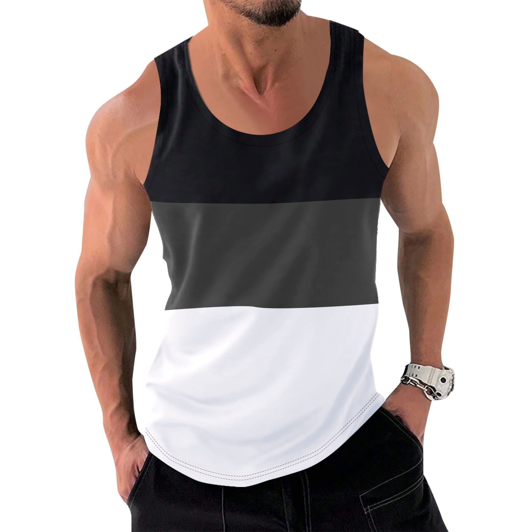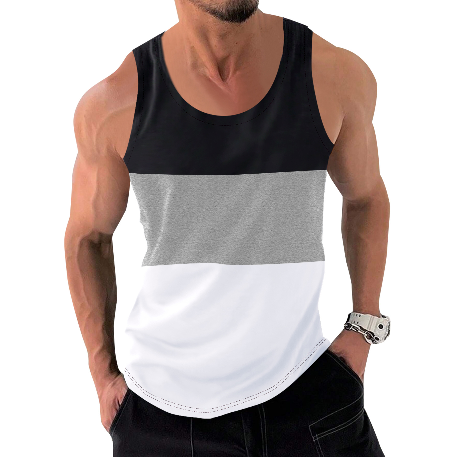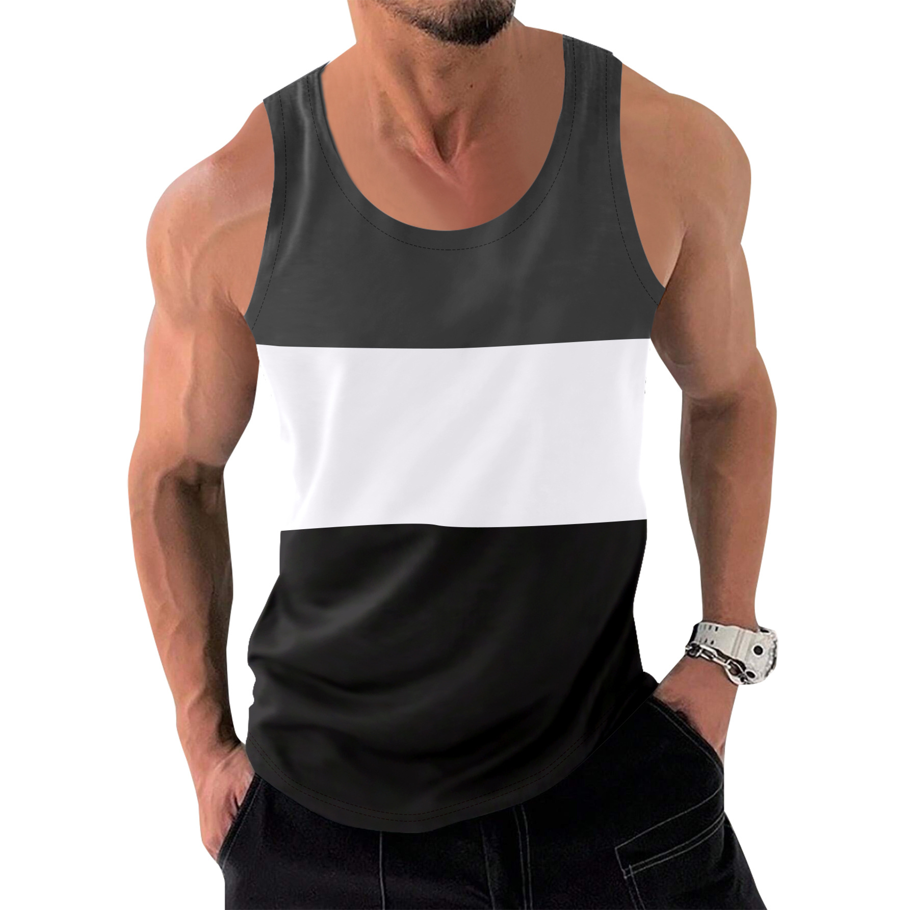 2024 년 여름 새로운 국경 유럽 및 미국 남자 조끼 스티칭 대조 컬러 스포츠 피트니스 느슨한 달리기 조끼