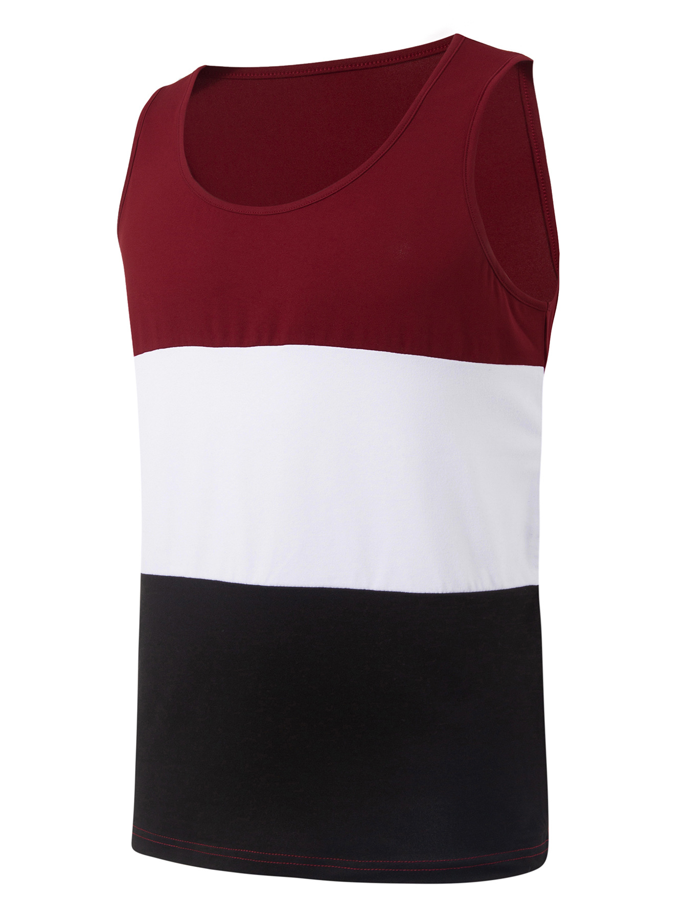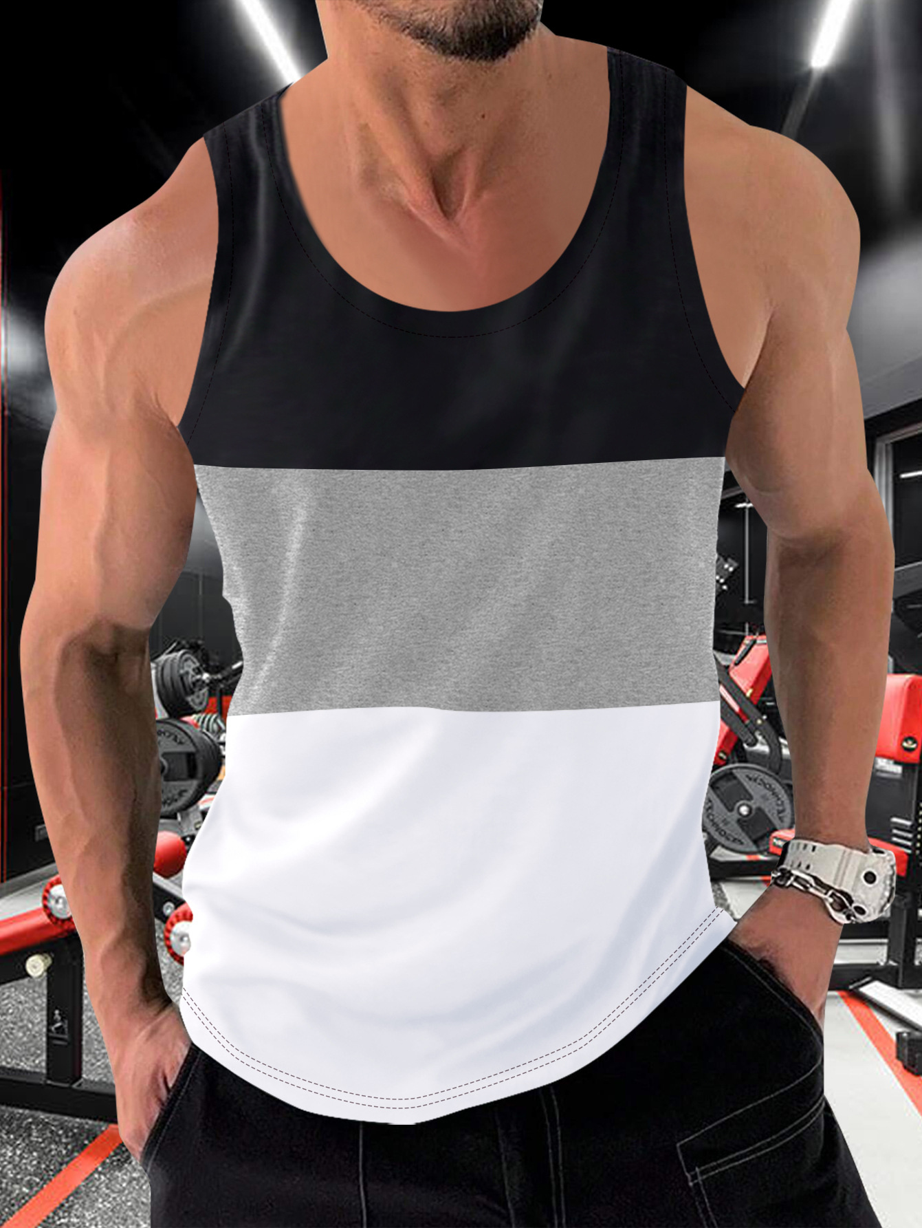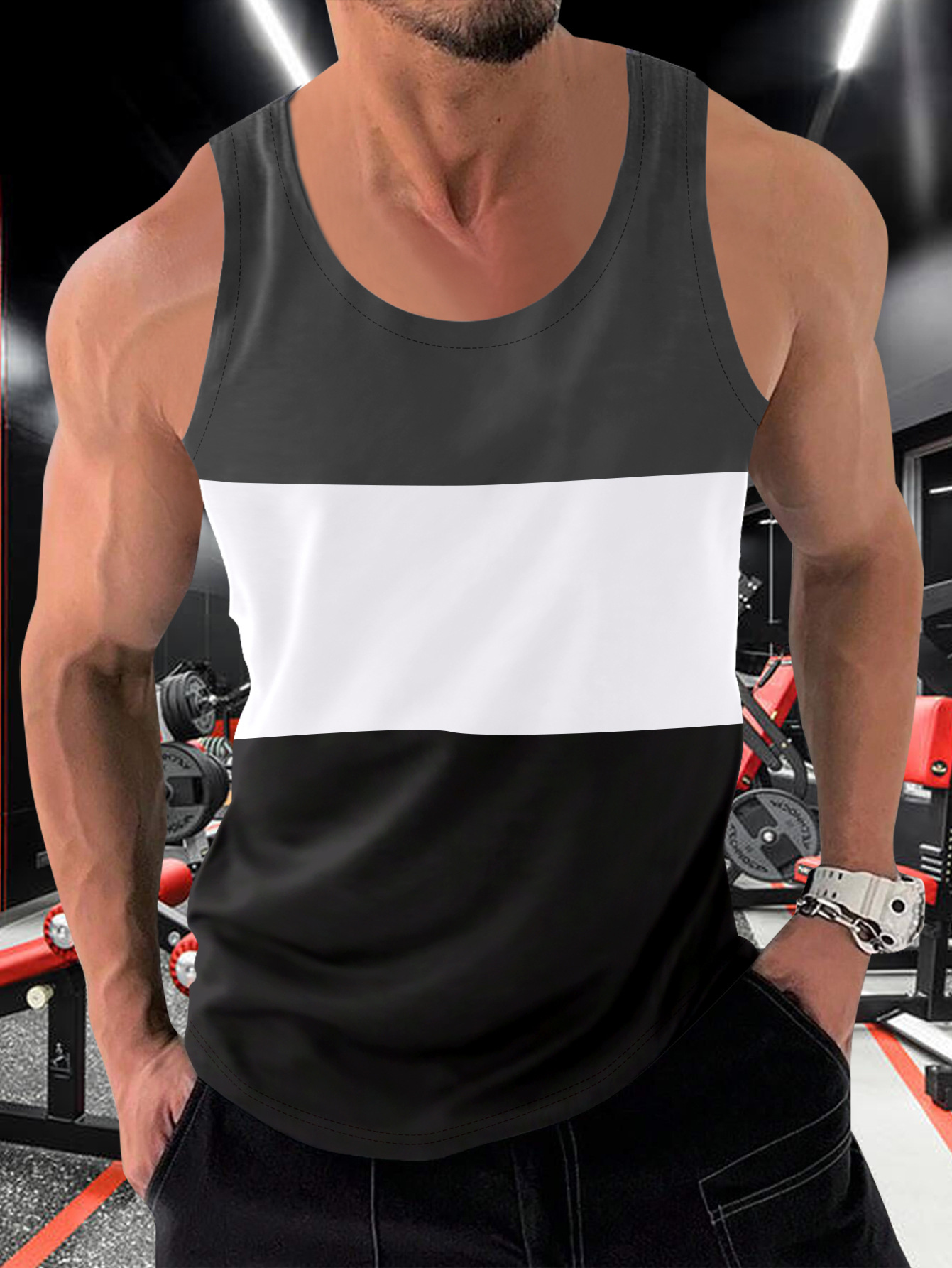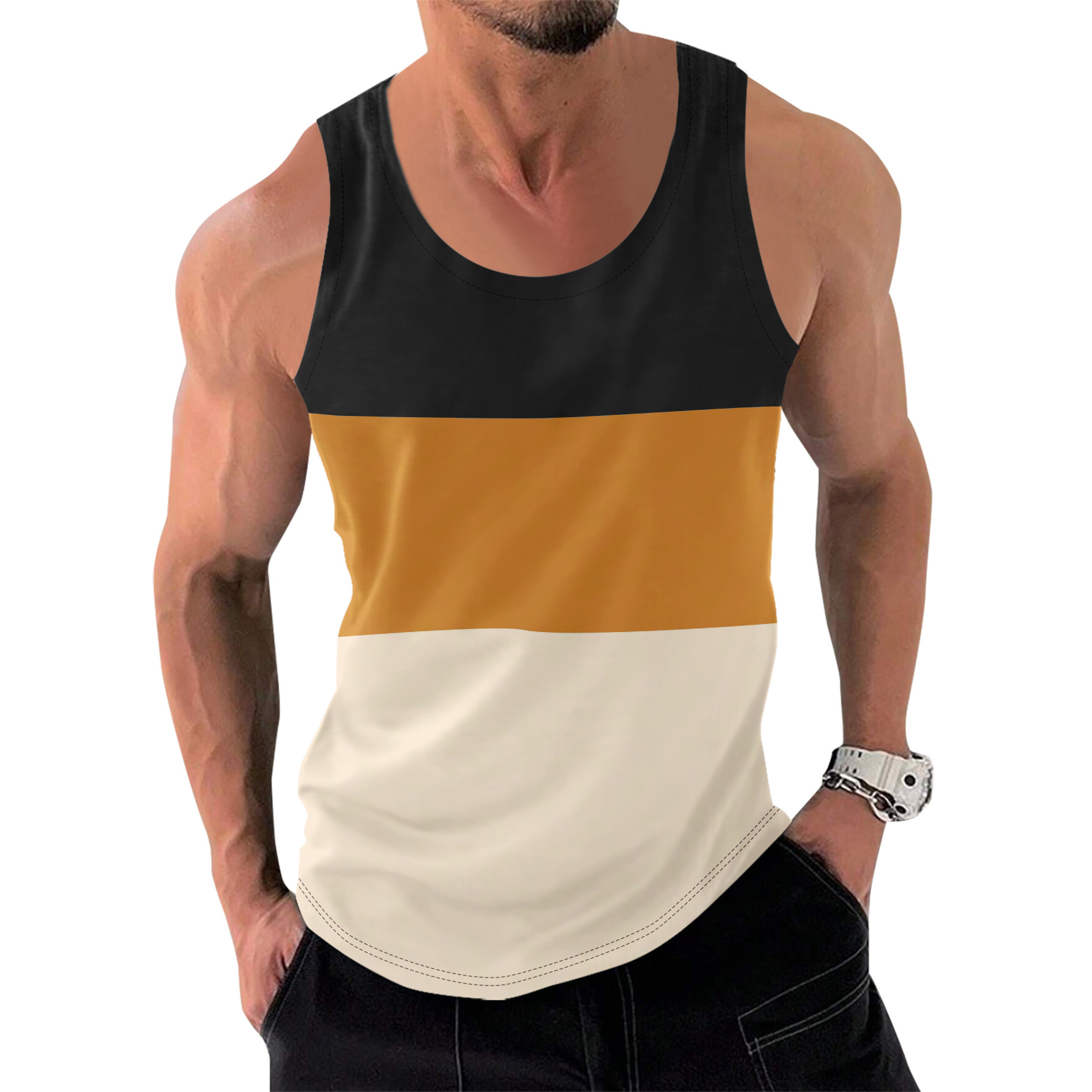 2024 년 여름 새로운 국경 유럽 및 미국 남자 조끼 스티칭 대조 컬러 스포츠 피트니스 느슨한 달리기 조끼