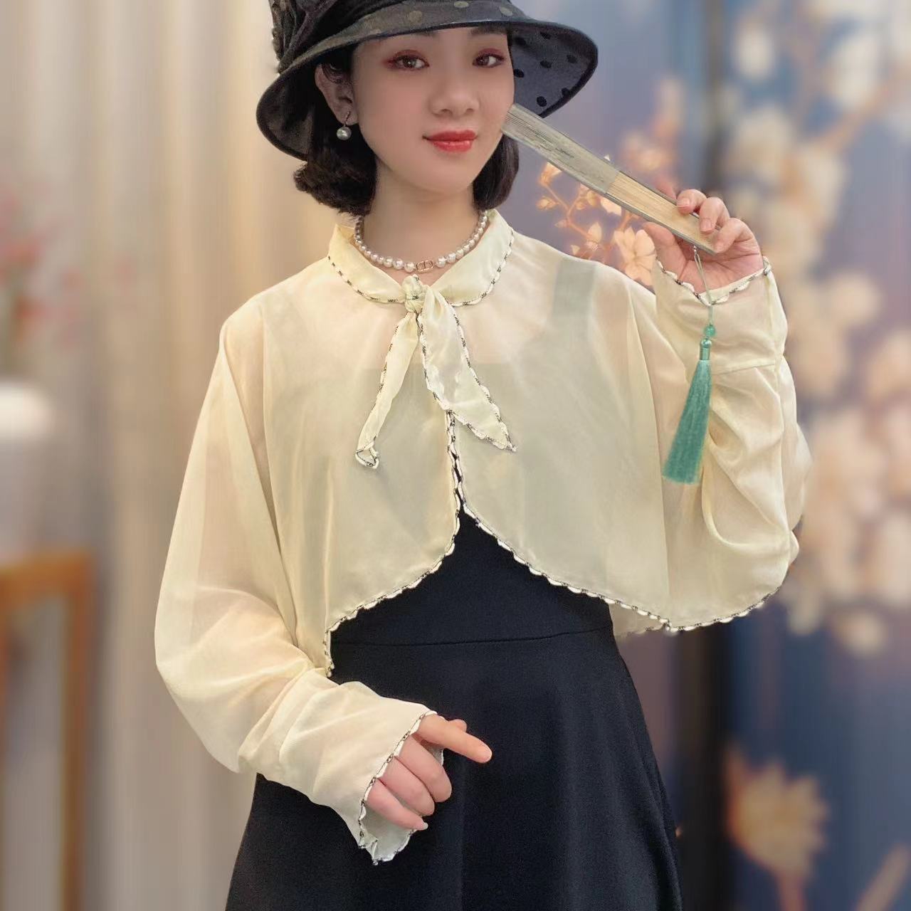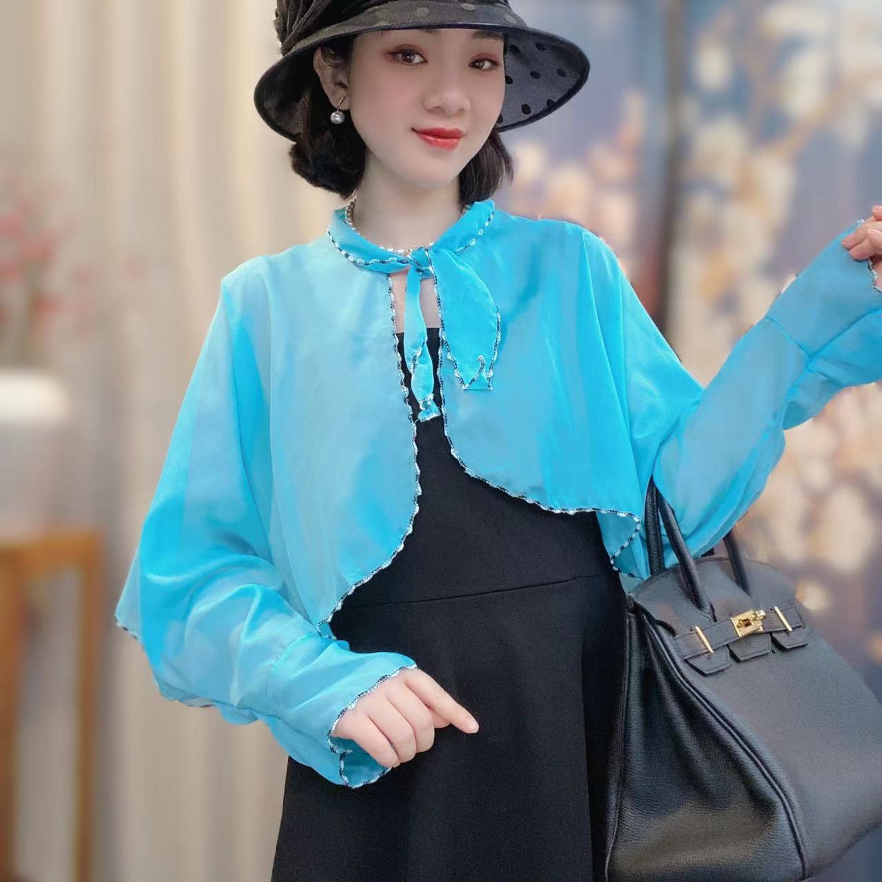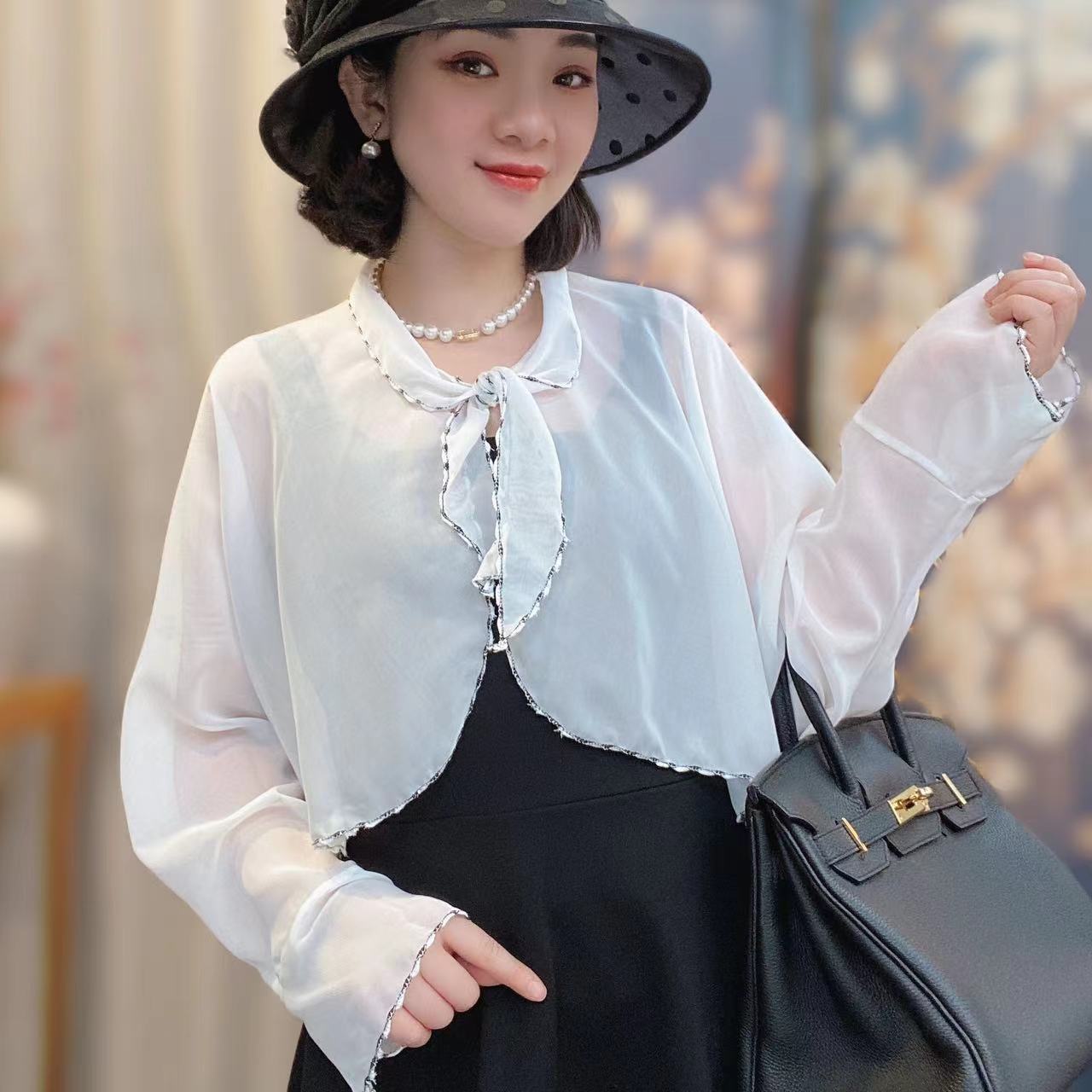 코코 스카프 짧은 쉬폰 선 스크린 목도리 여행 사진 여름 새로운 선 스크린 옷을 입고 우아한 외국 스타일스토어 가기