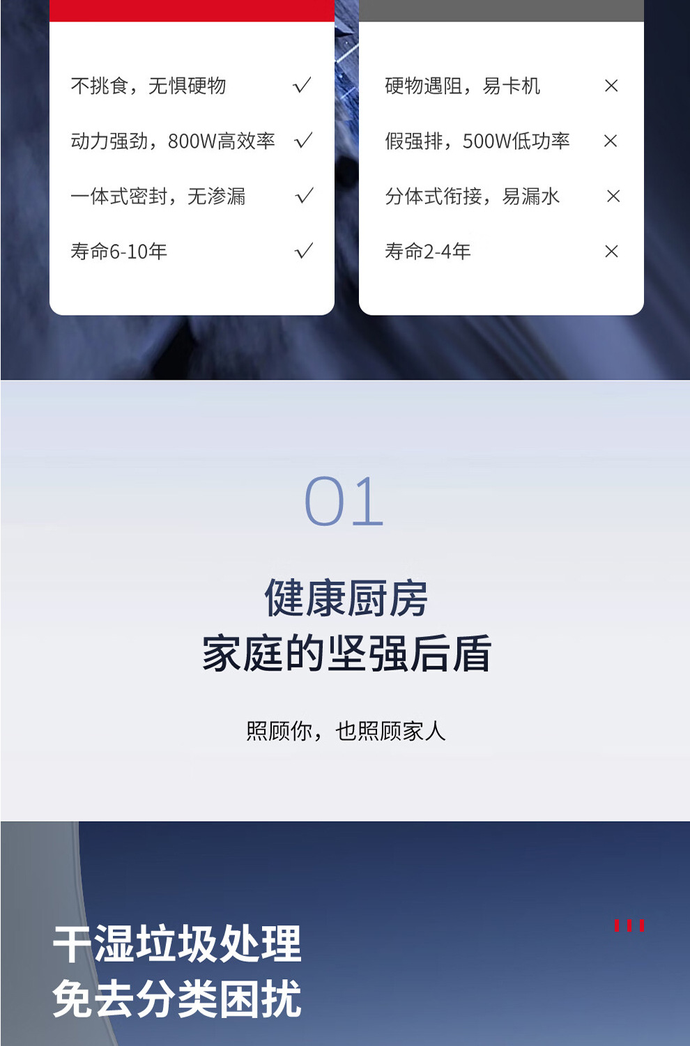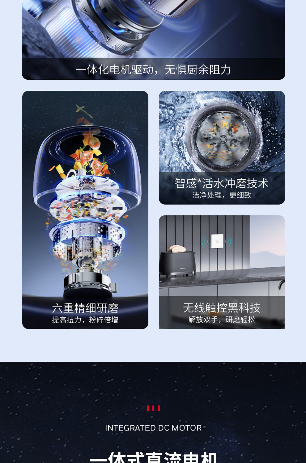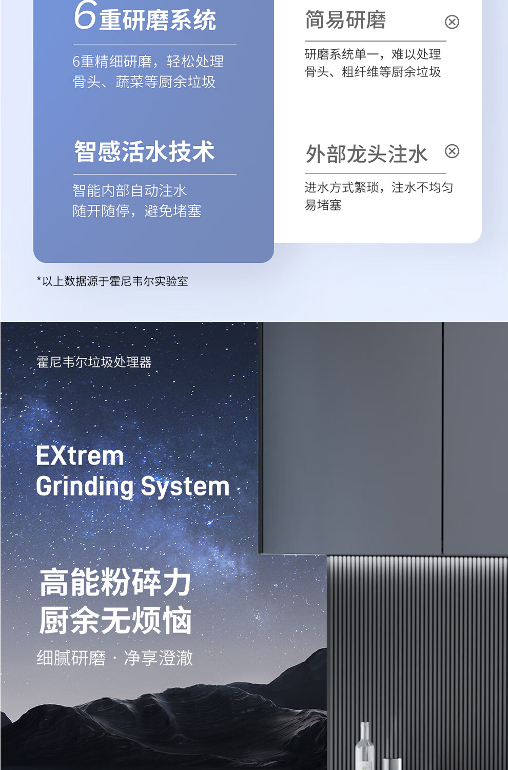 Honeywell 가정용 주방 식품 폐기물 처리기 분말 기계 6 단계 연삭 강한 싱크 X6PRO
