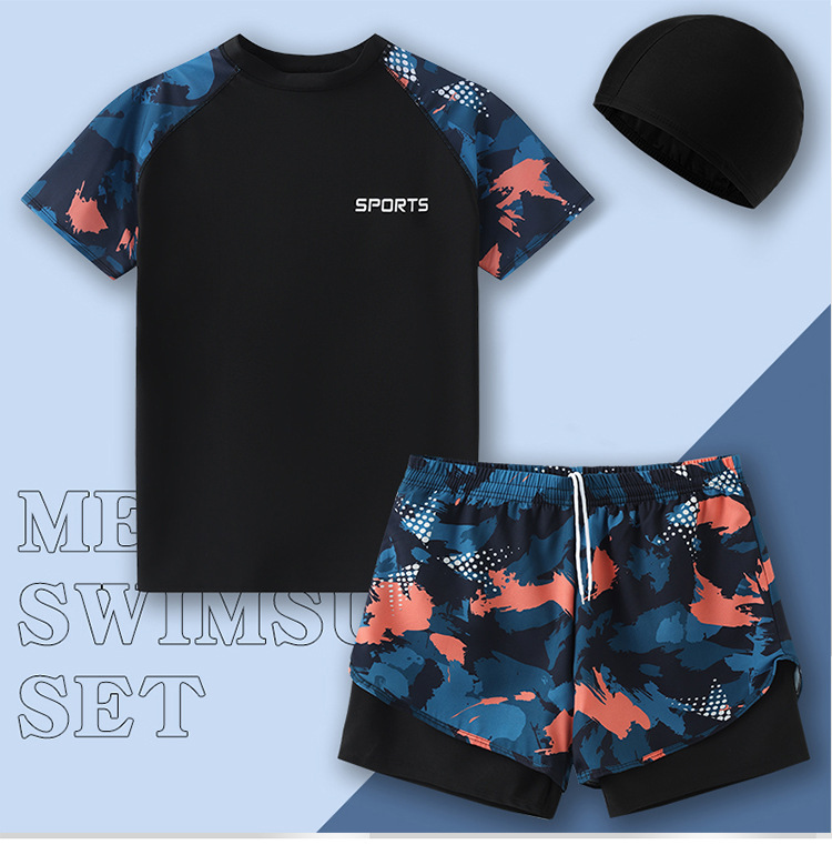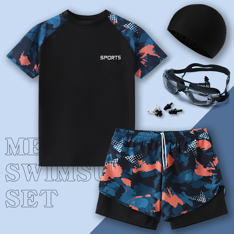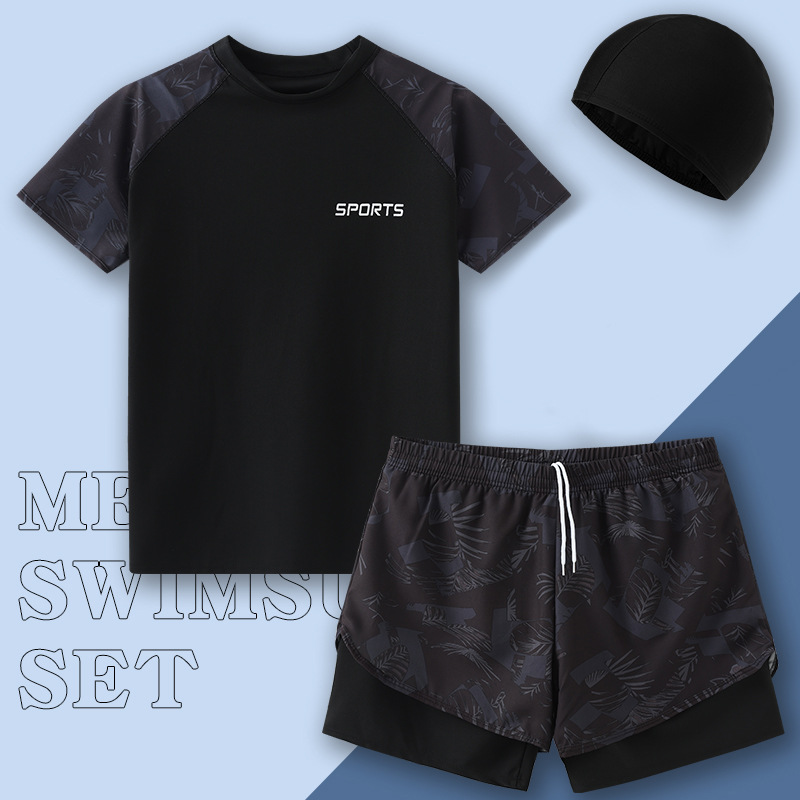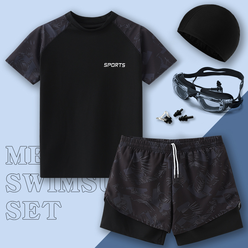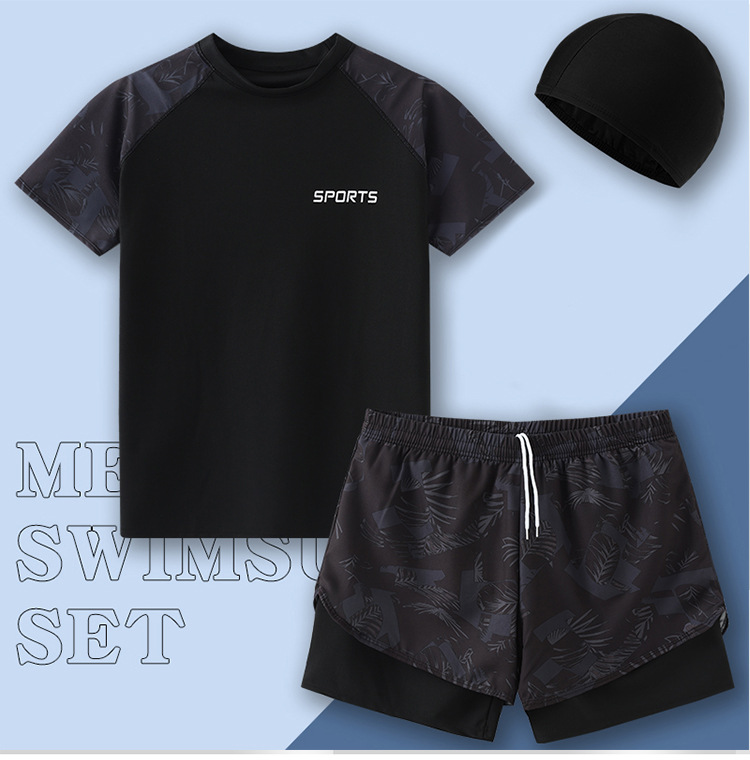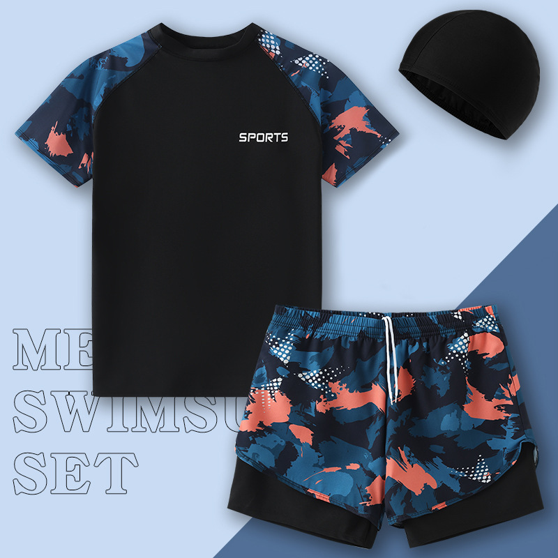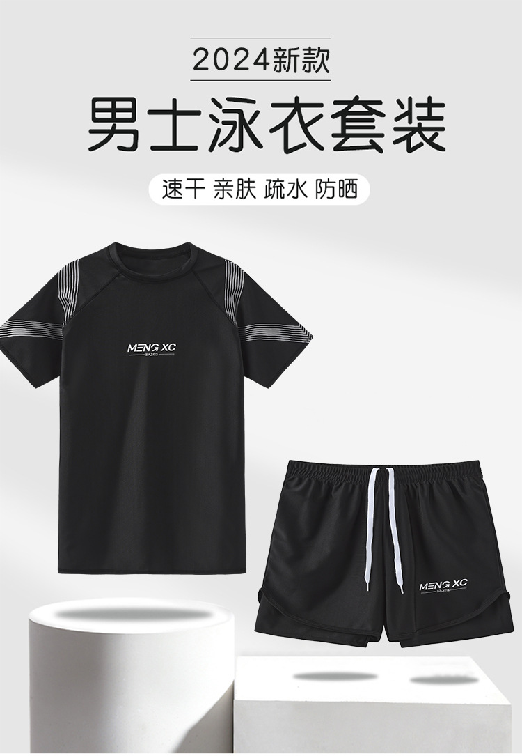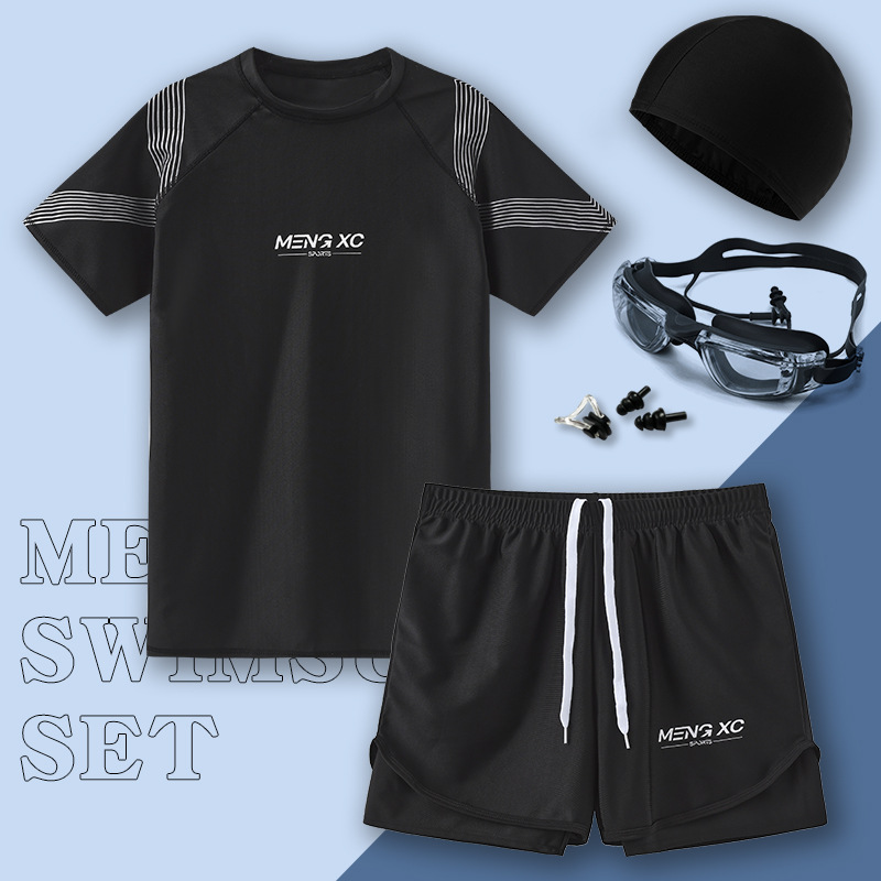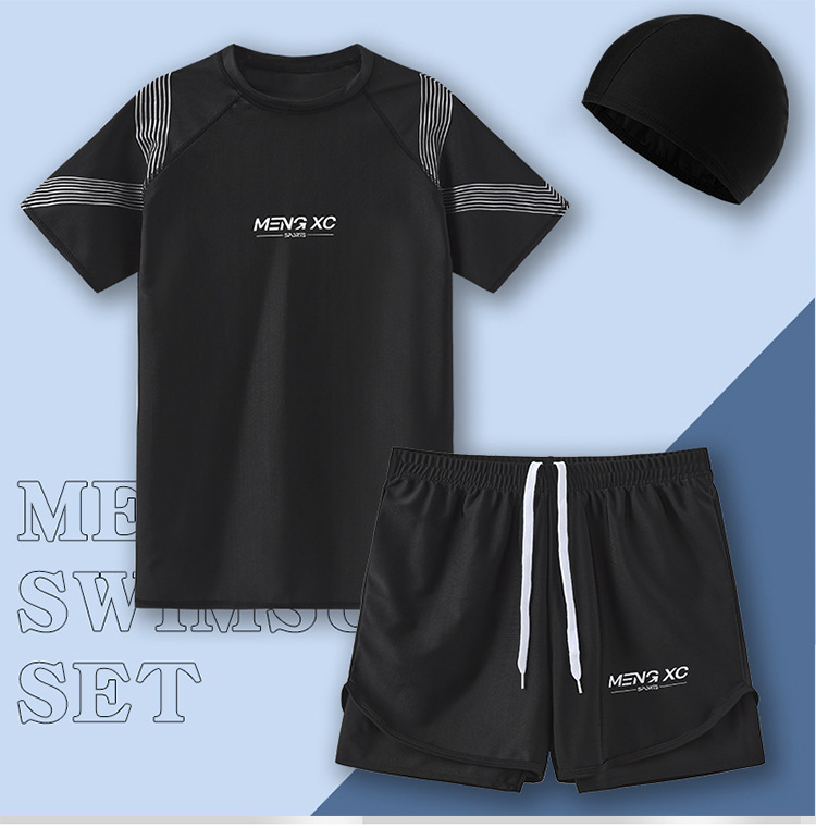 수영복 남자 2024 년 새 도착 방망신 수영 트렁크 온천 톱 보이즈 세트 남자 수영복 세트