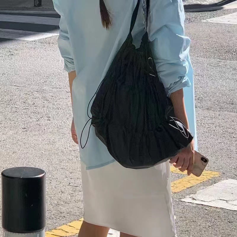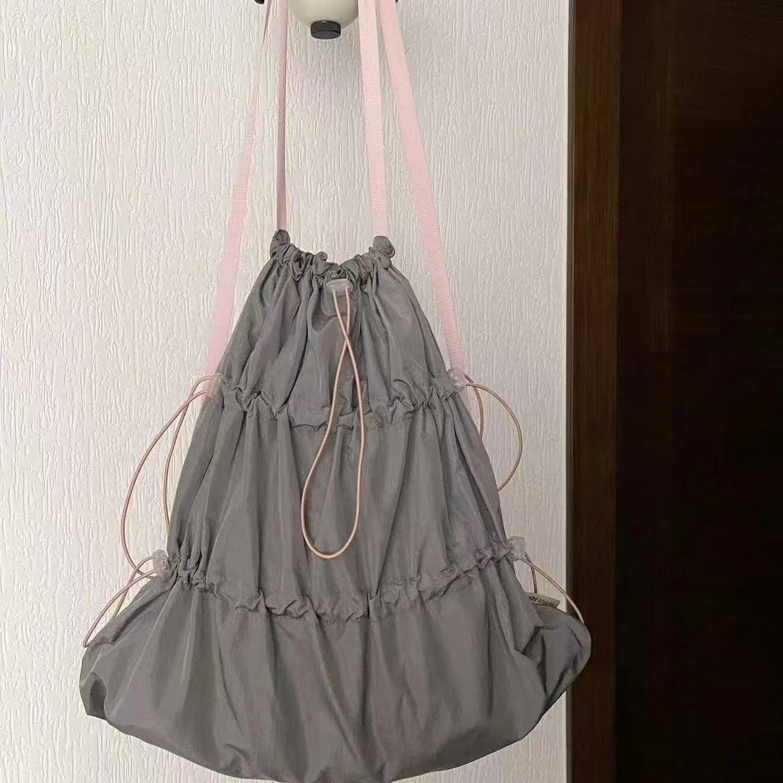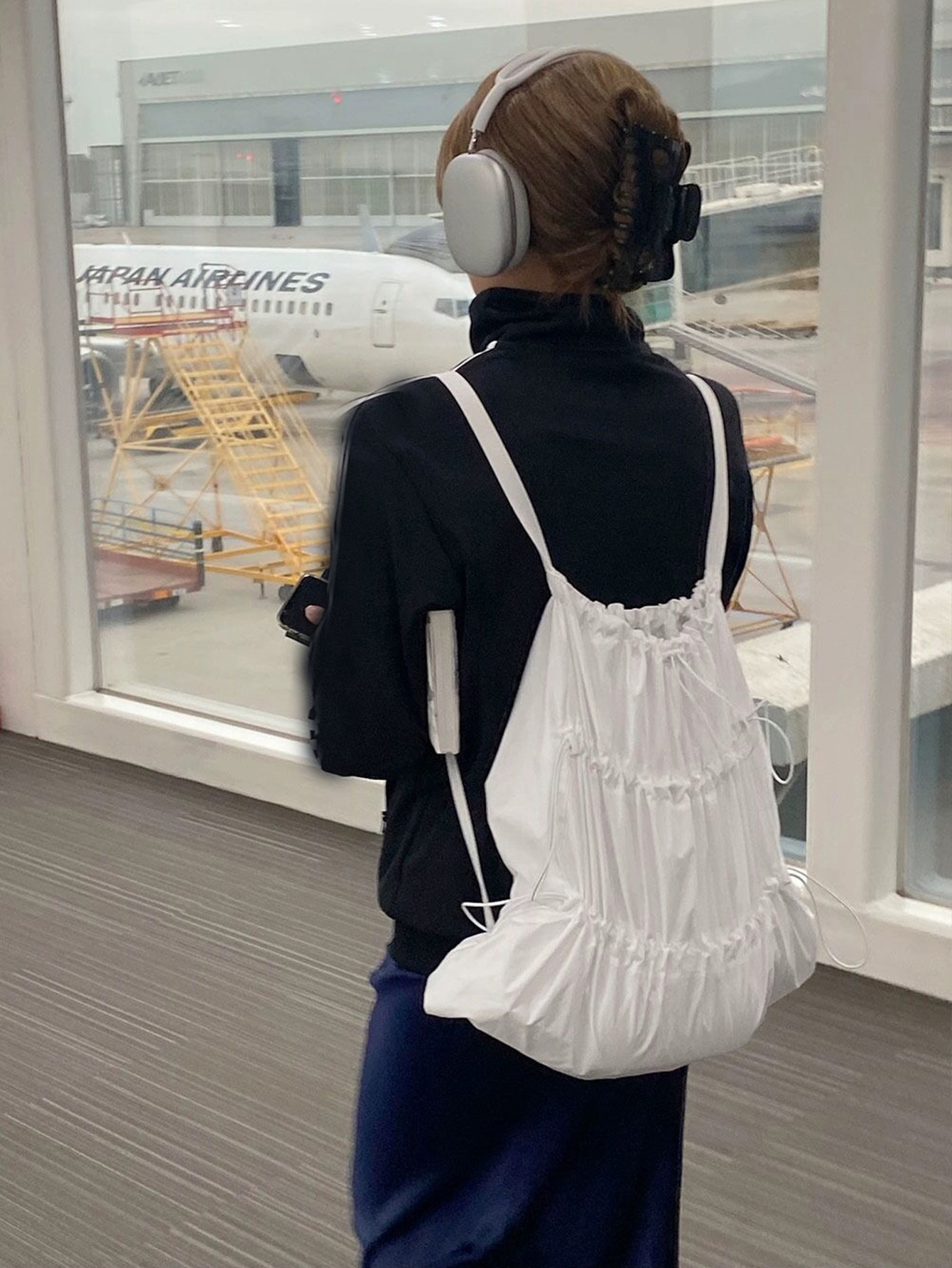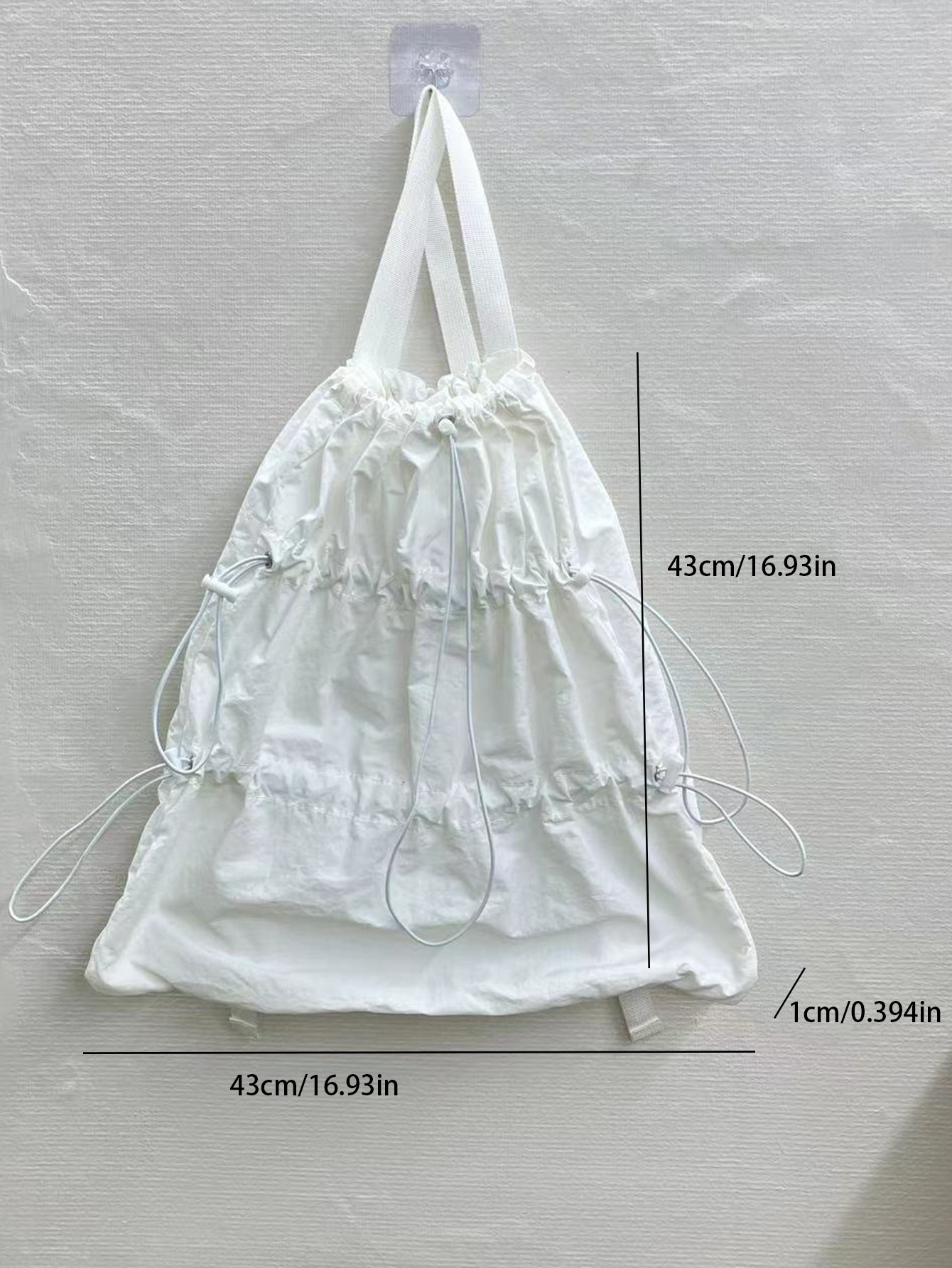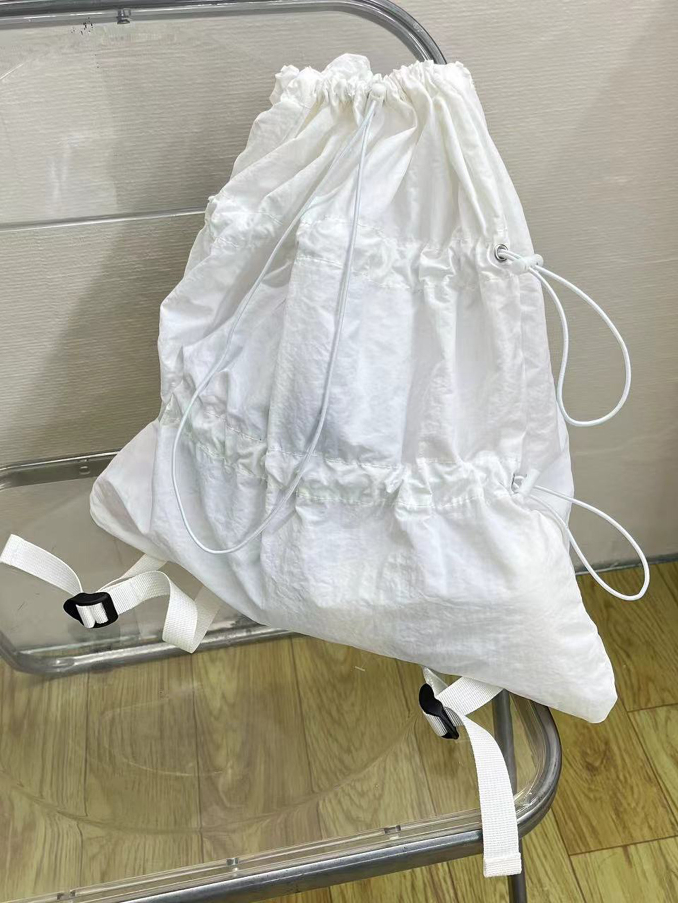 2024 새로운 화이트 드로우 스트링 배낭 여성용 한국 게으른 스타일 배낭 경량 나일론 발수 배낭