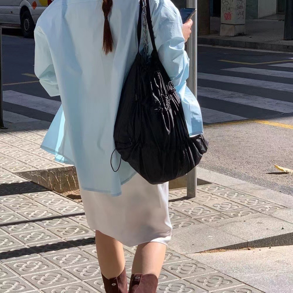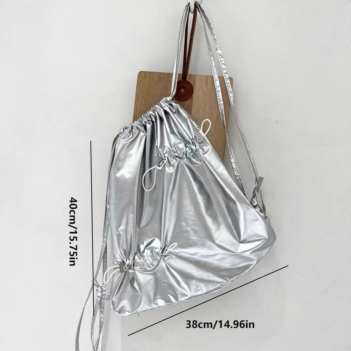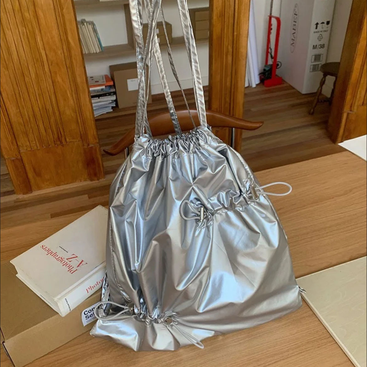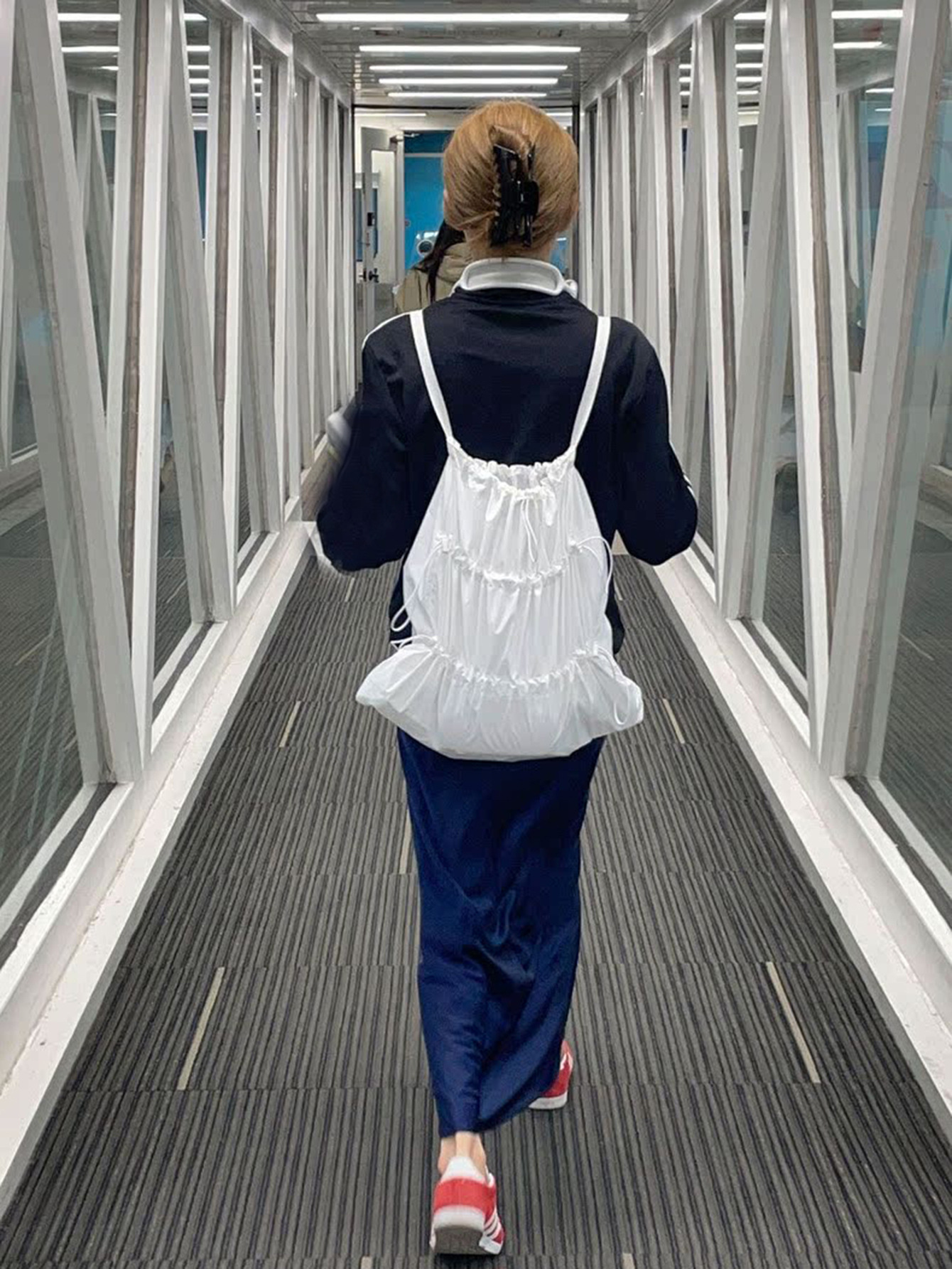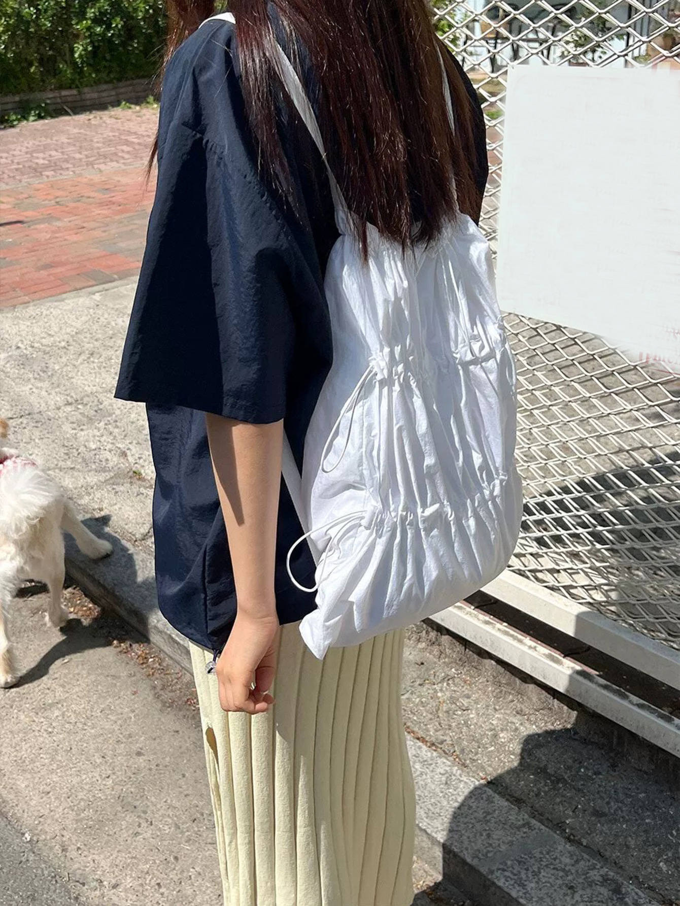 2024 새로운 화이트 드로우 스트링 배낭 여성용 한국 게으른 스타일 배낭 경량 나일론 발수 배낭