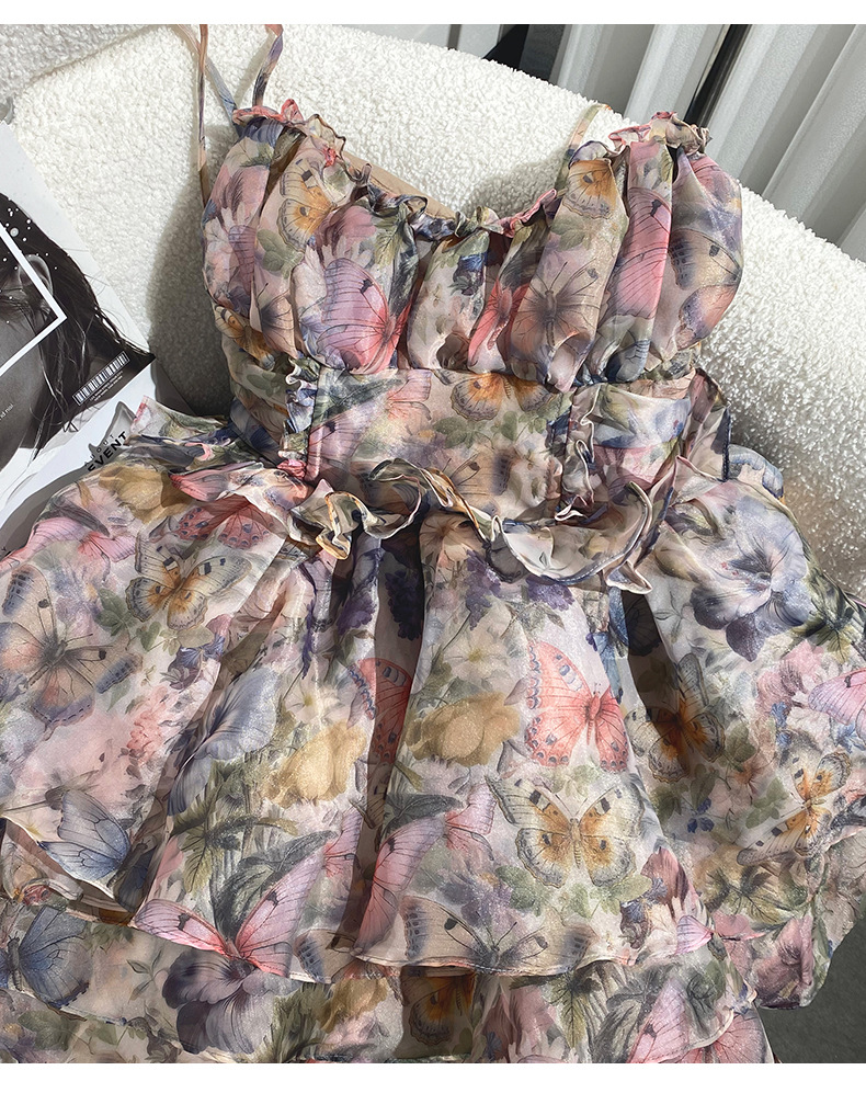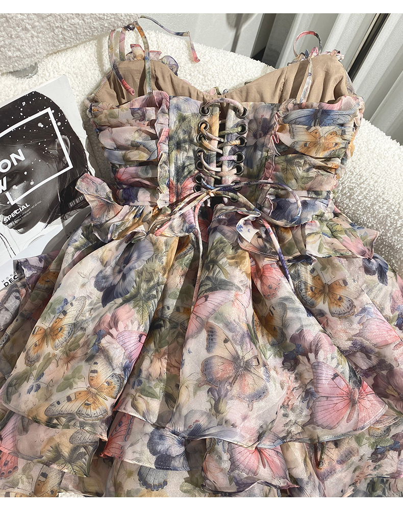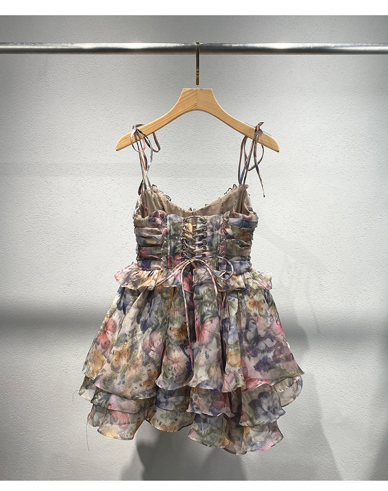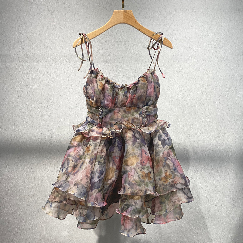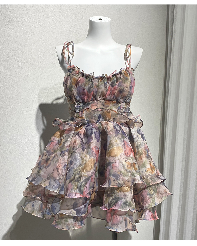 2024 여름 신상 믹스 컬러 꽃나비 허브 프린트 미니 원피스 여성용