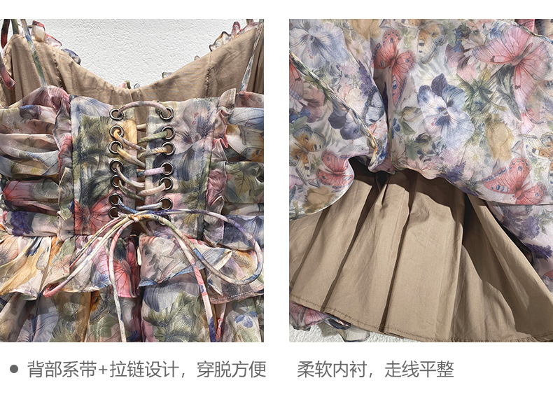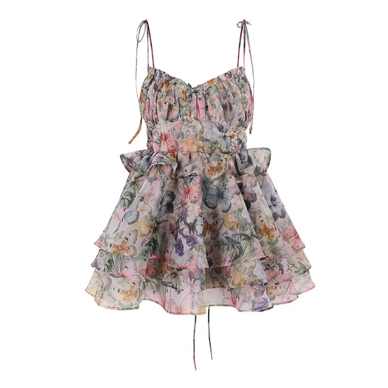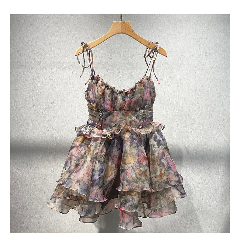 2024 여름 신상 믹스 컬러 꽃나비 허브 프린트 미니 원피스 여성용스토어 가기