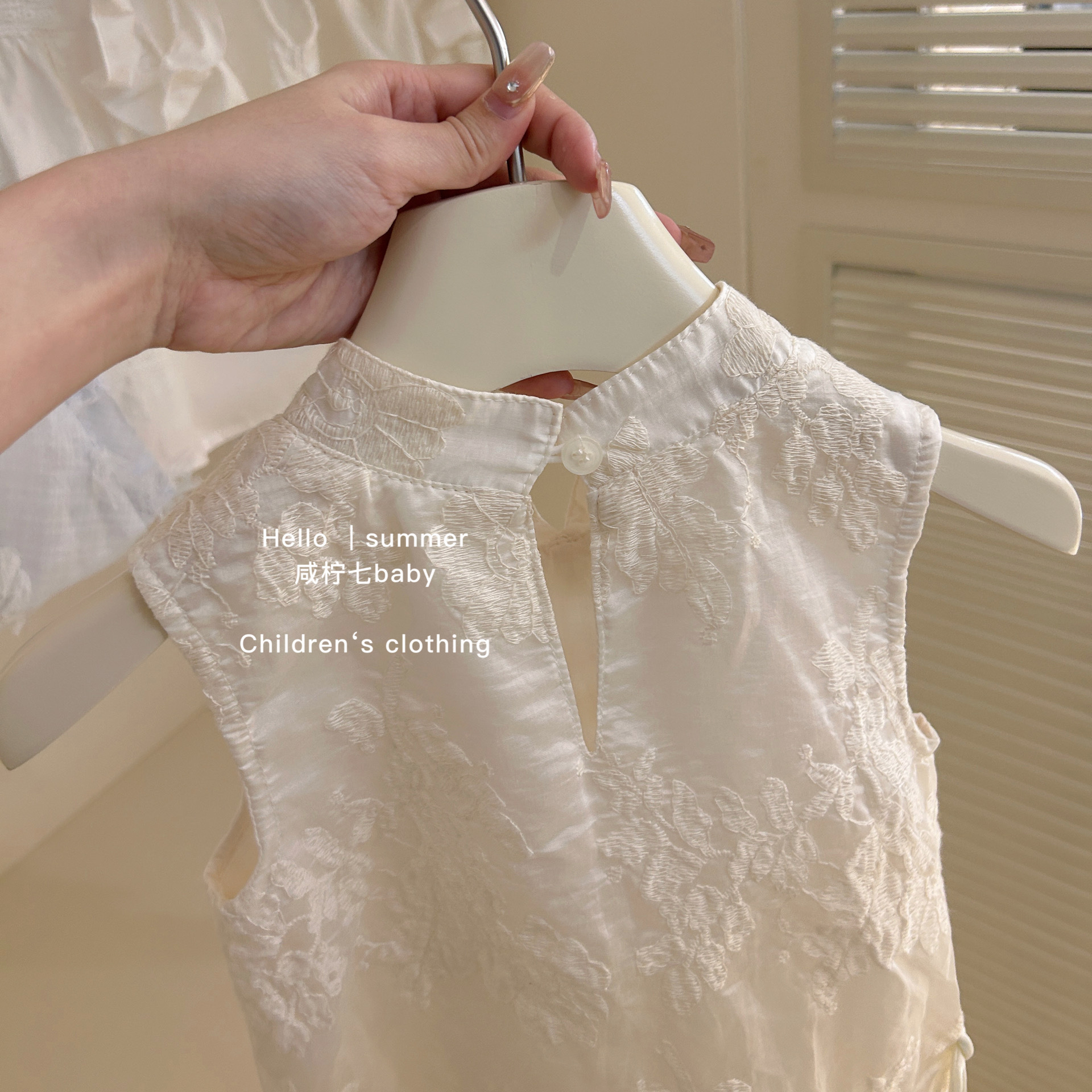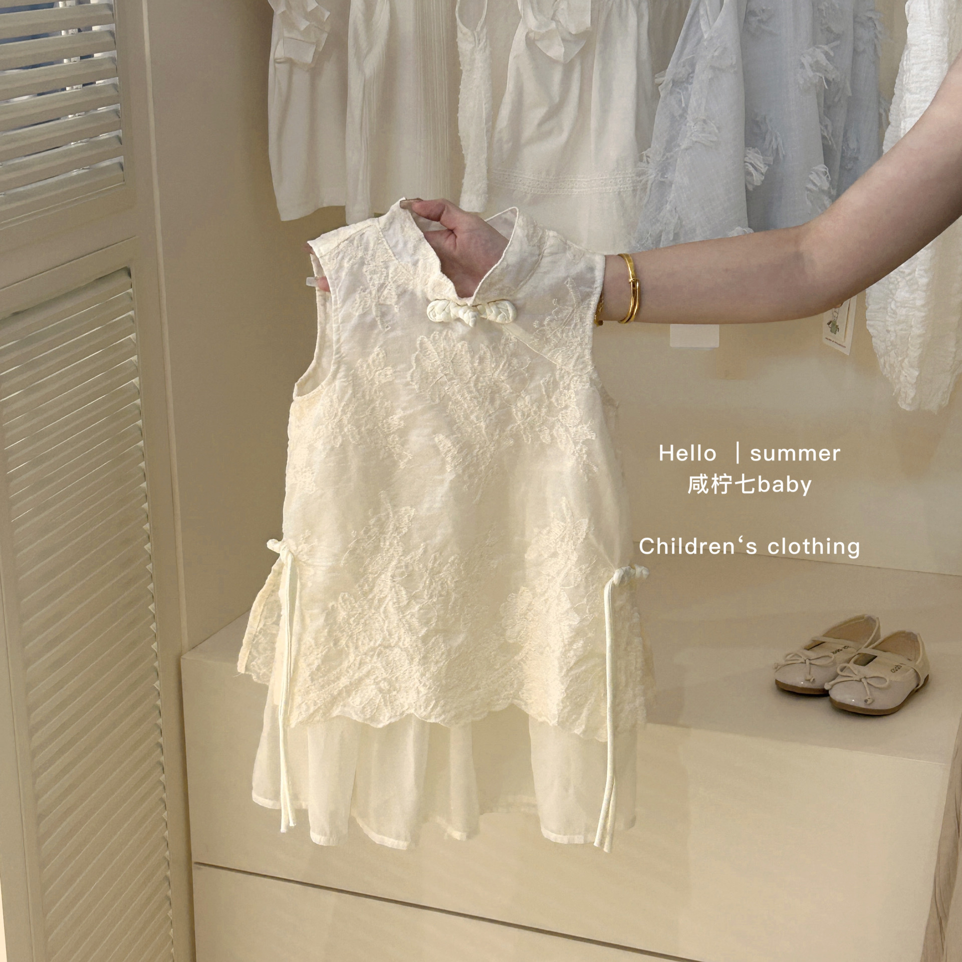 Xiaoxian Ning 아동복, 중국 스타일 여아 드레스, 여름 드레스, 새로운 아동용 중국 스타일 치파오, 페이크 투피스 조끼 드레스, 트렌디