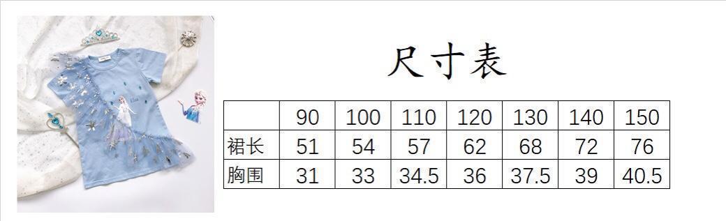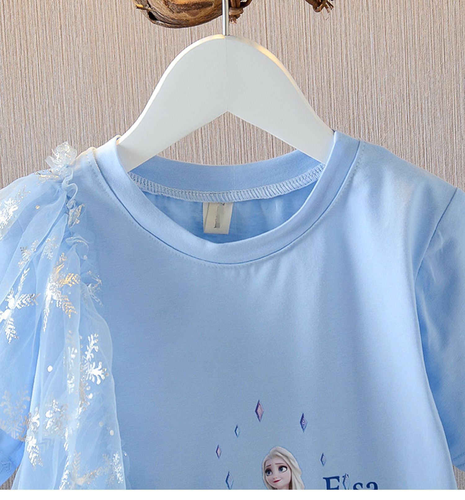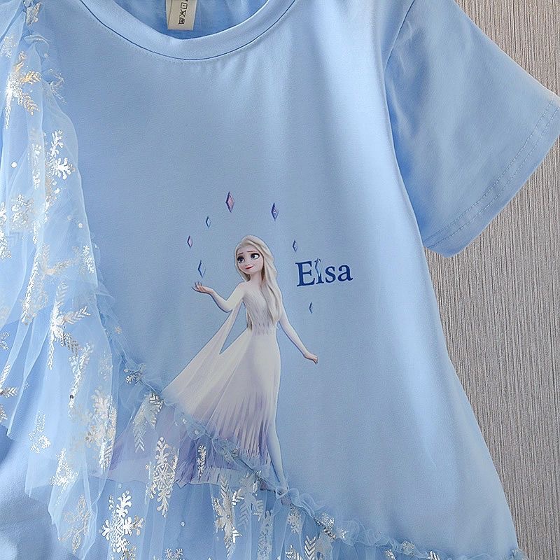 여름 반팔 냉동 만화 여행 중간 길이 티셔츠 엘사 공주 원피스 안나 원피스 티셔츠 스커트