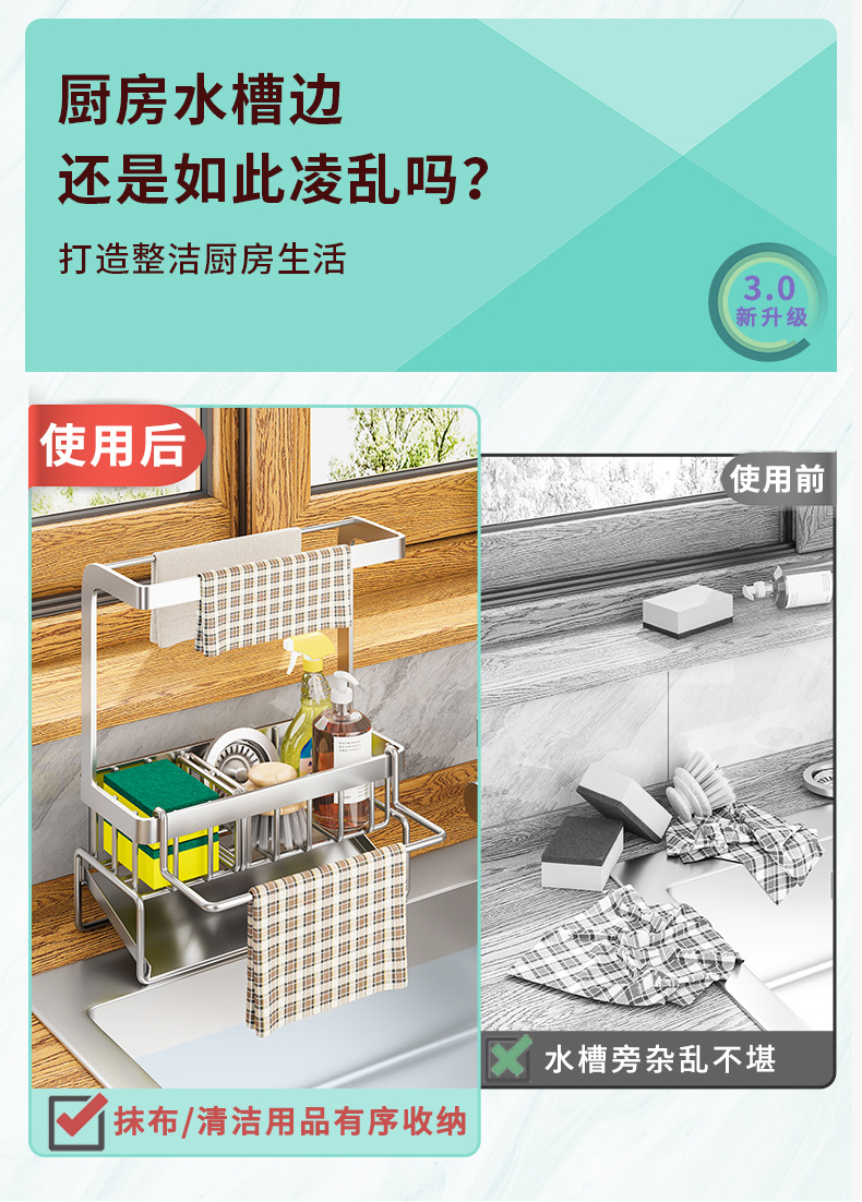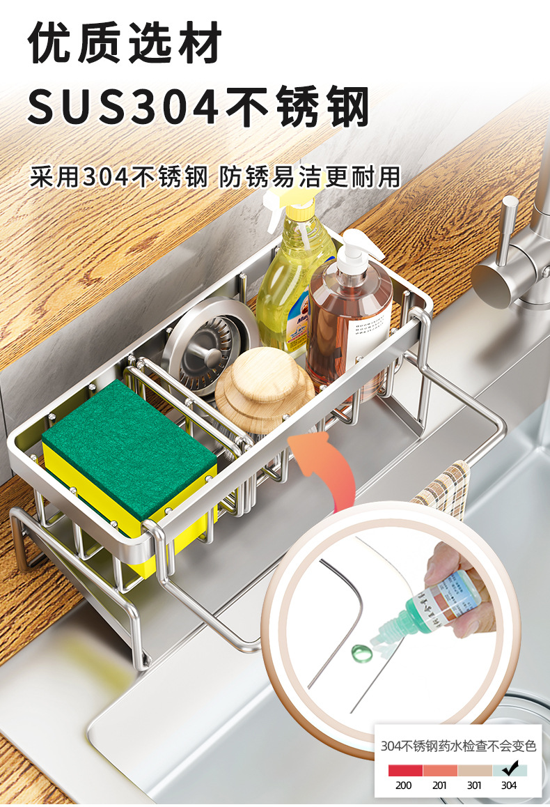 304 스테인레스 스틸 주방 랙 싱크 랙 건조 랙 싱크 접시 천 스폰지 스틸 와이어 볼 스토리지 랙