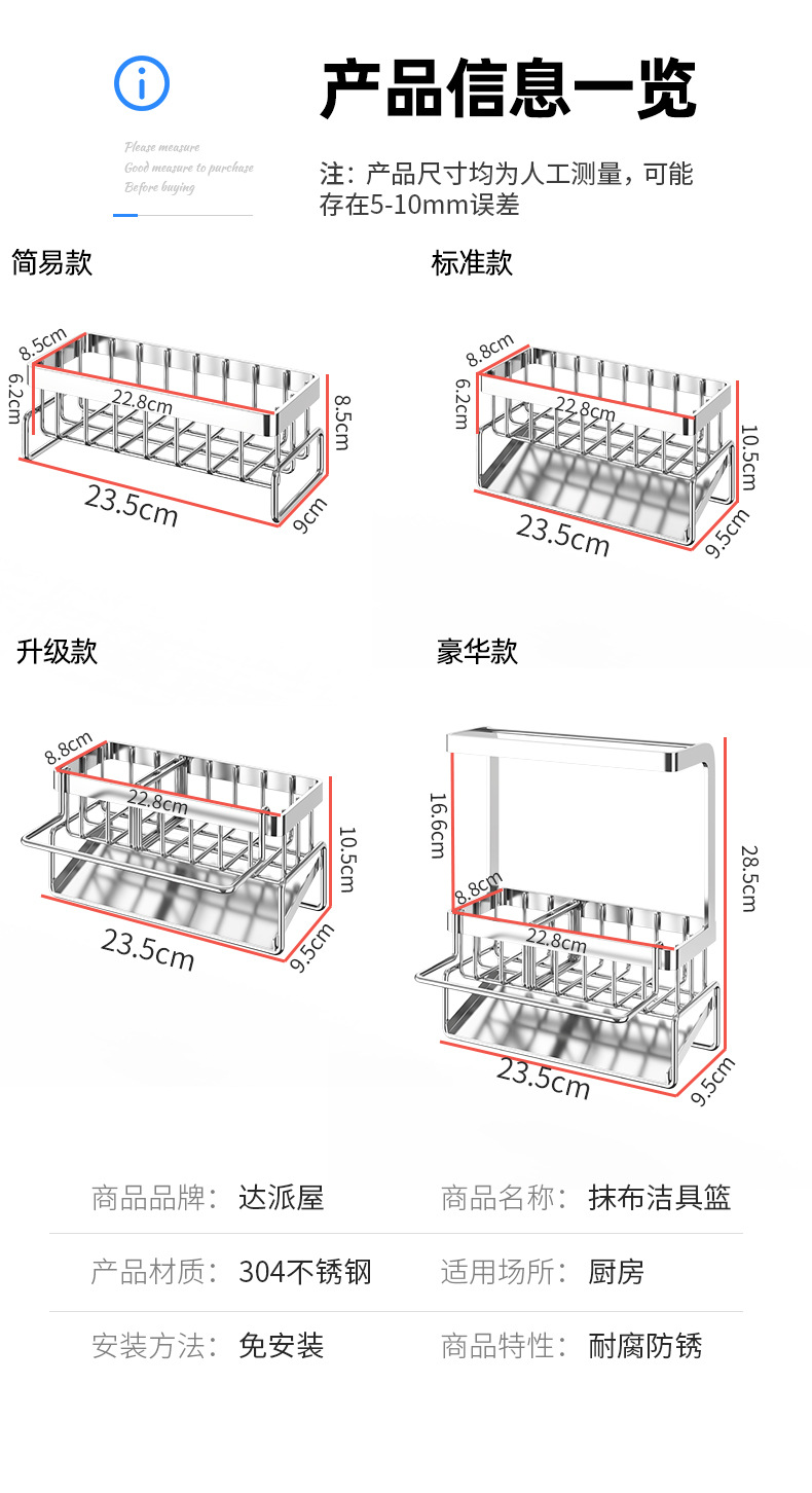 304 스테인레스 스틸 주방 랙 싱크 랙 건조 랙 싱크 접시 천 스폰지 스틸 와이어 볼 스토리지 랙스토어 가기