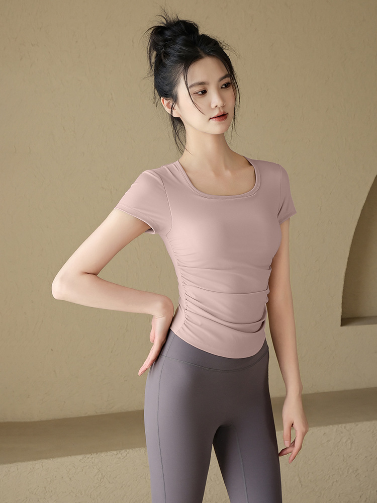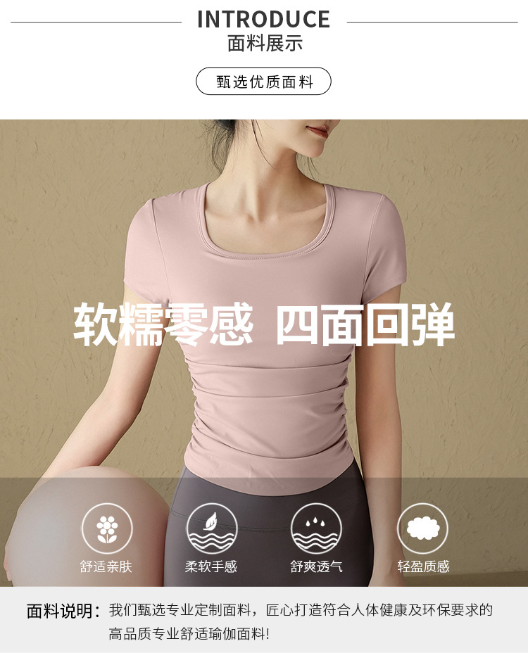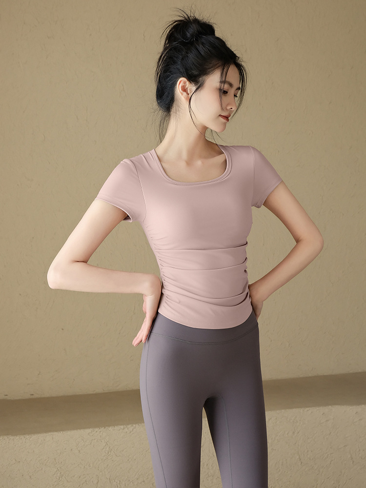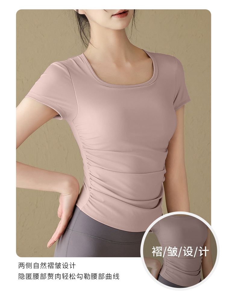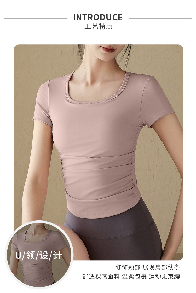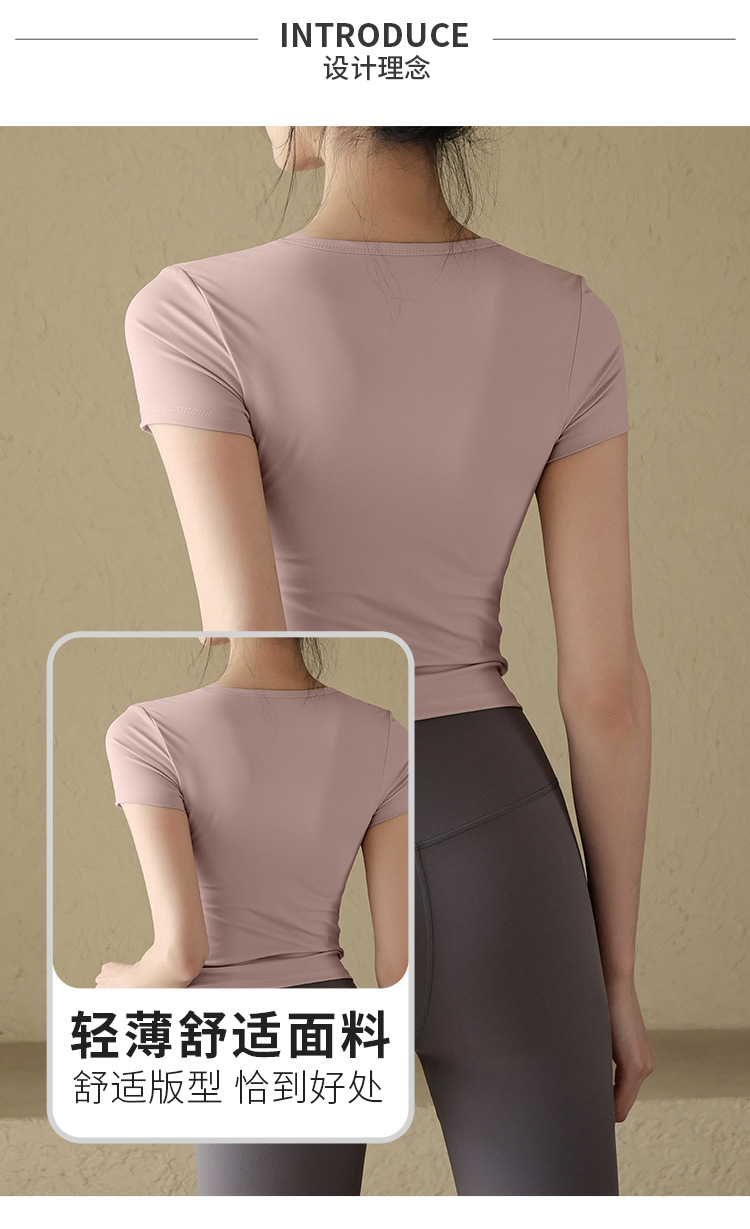 요가 의류 여성의 2024 여름 새로운 스포츠 가슴 패드 필라테스와 반팔 티셔츠 훈련 슬리밍 피트니스 탑