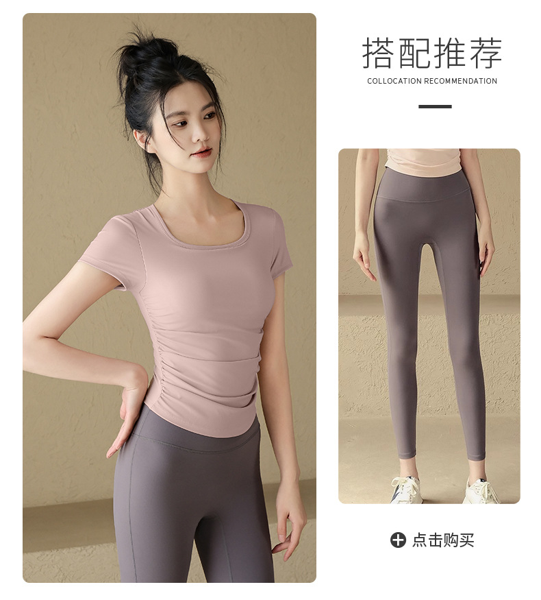 요가 의류 여성의 2024 여름 새로운 스포츠 가슴 패드 필라테스와 반팔 티셔츠 훈련 슬리밍 피트니스 탑스토어 가기