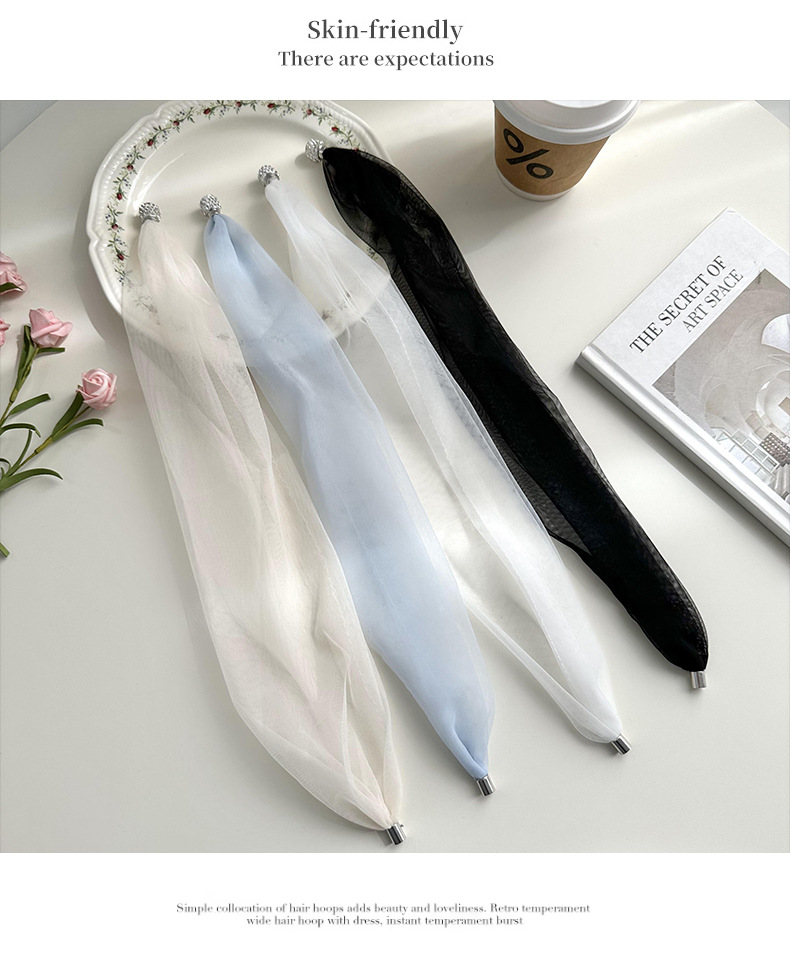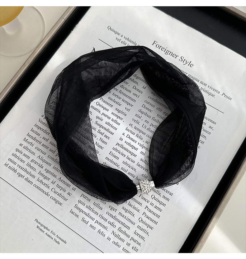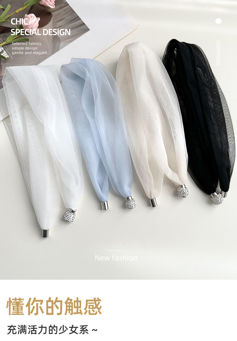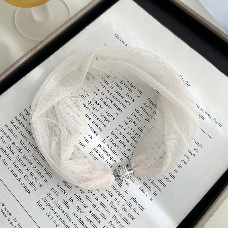 레이스 스카프 여성의 여름 자기 버클 간단한 진주 펜던트 목 보호 작은 스카프 메쉬 통기성 예술적 장식 스카프
